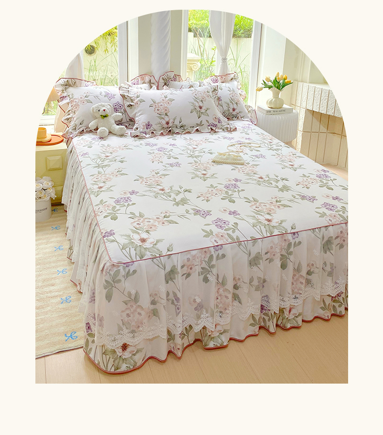 当前位置: 91家纺网 > 商品网购 > 床上用品 > 床裙 > 雨彤家纺 2025新款高克重韩式公主风亲肤斜纹床裙四件套 望夏花艺-公主风