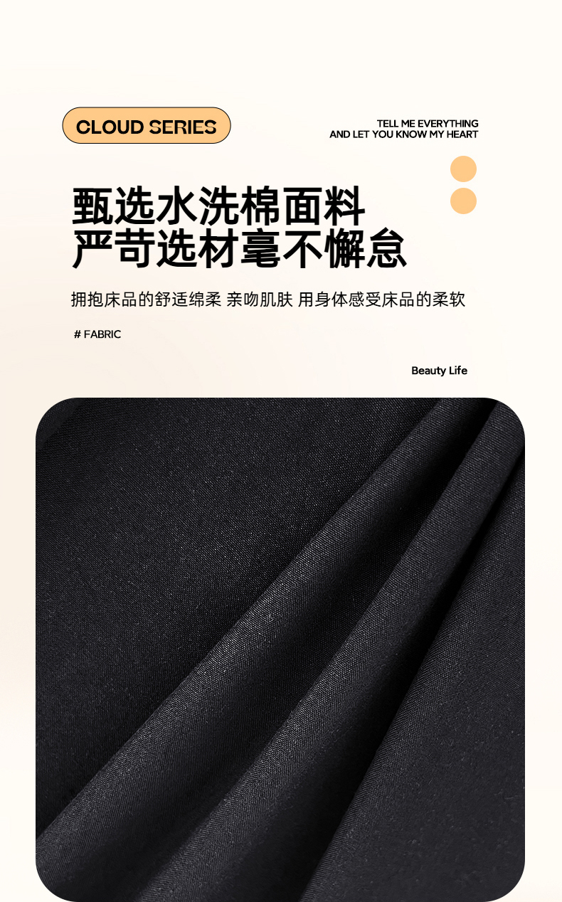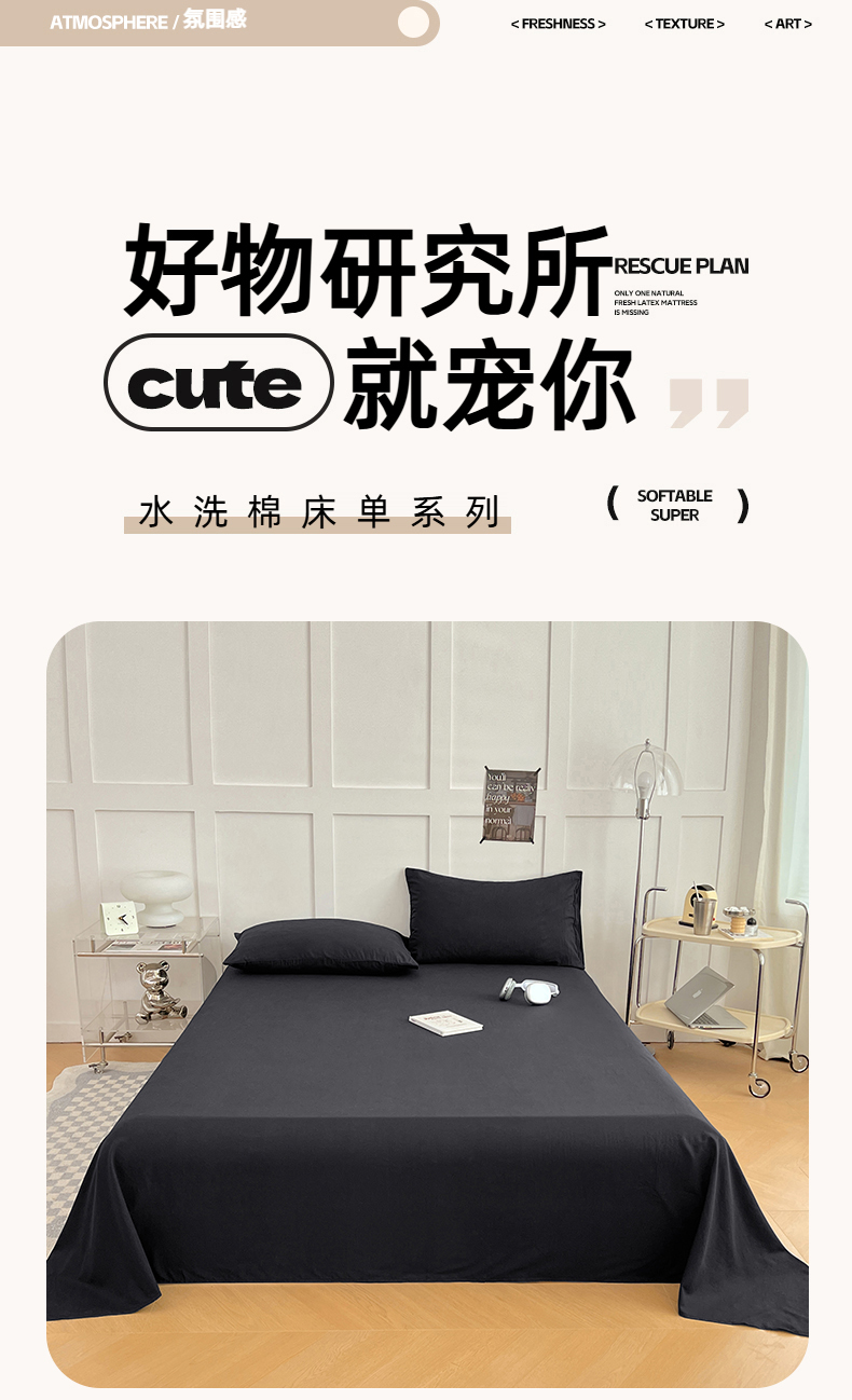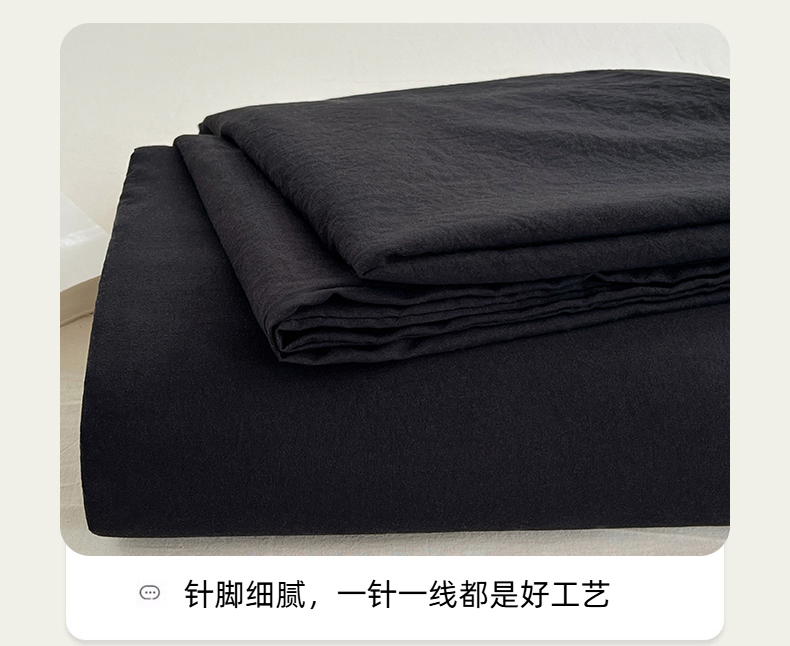 • 91家纺网 家纺一手货源 找家纺 彩韵家纺 2025新款柔软云感水洗m床单系列 耀夜黑