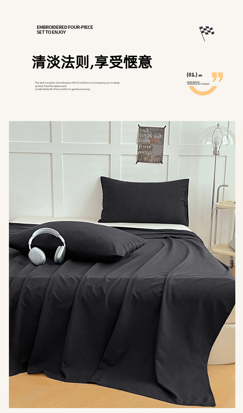 彩韵家纺 2025新款柔软云感水洗m床单系列 耀夜黑