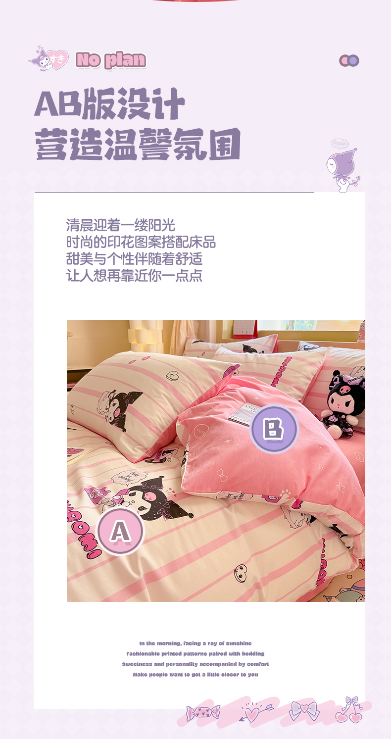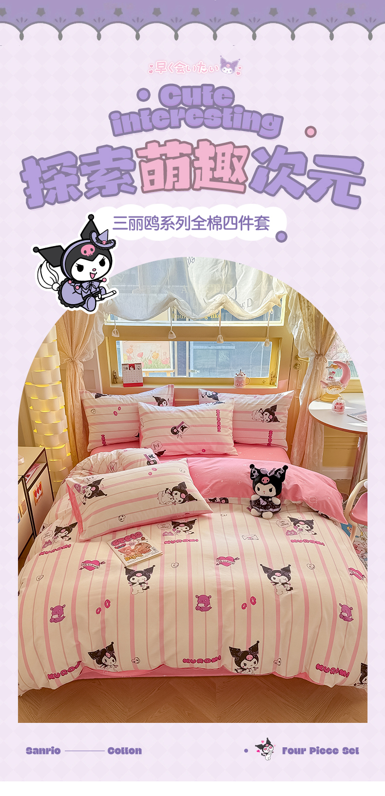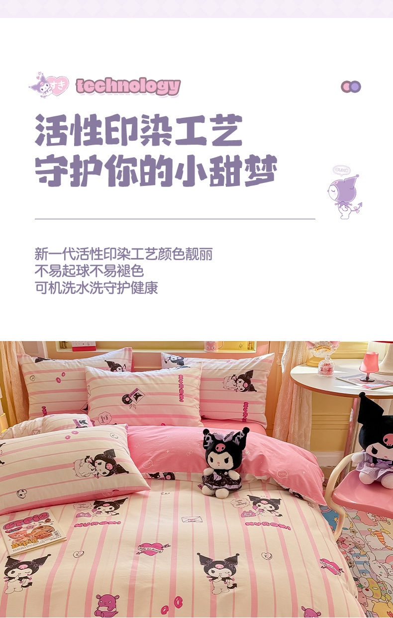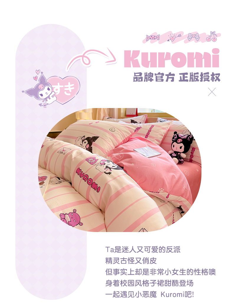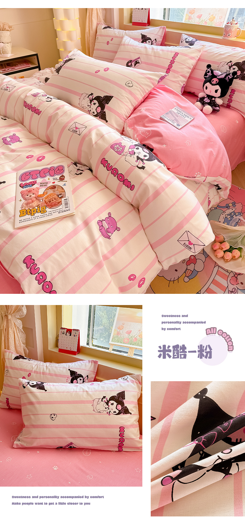 (总)蓝邻家纺 2024新款三丽鸥正版授权学生宿舍全棉印花四件套,甜甜库洛米,粉格美乐蒂,米酷粉,米酷紫,妙可乐园,牛奶大耳狗,玉桂狗