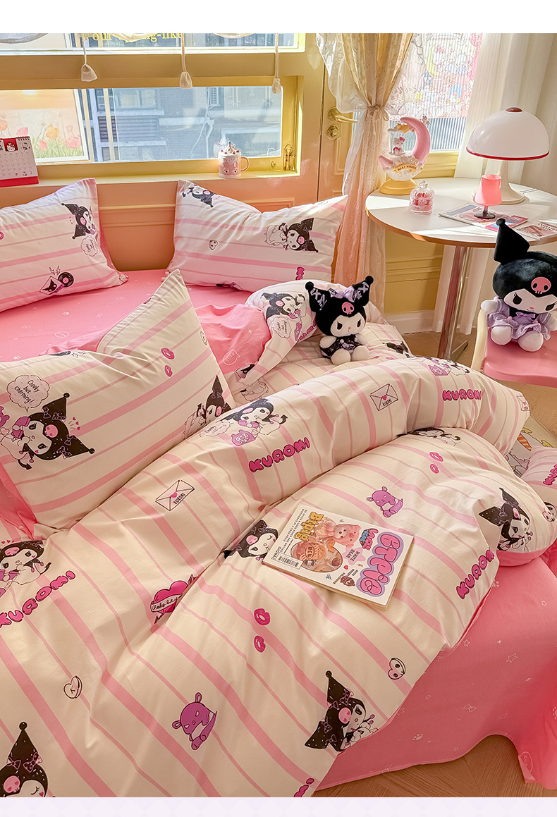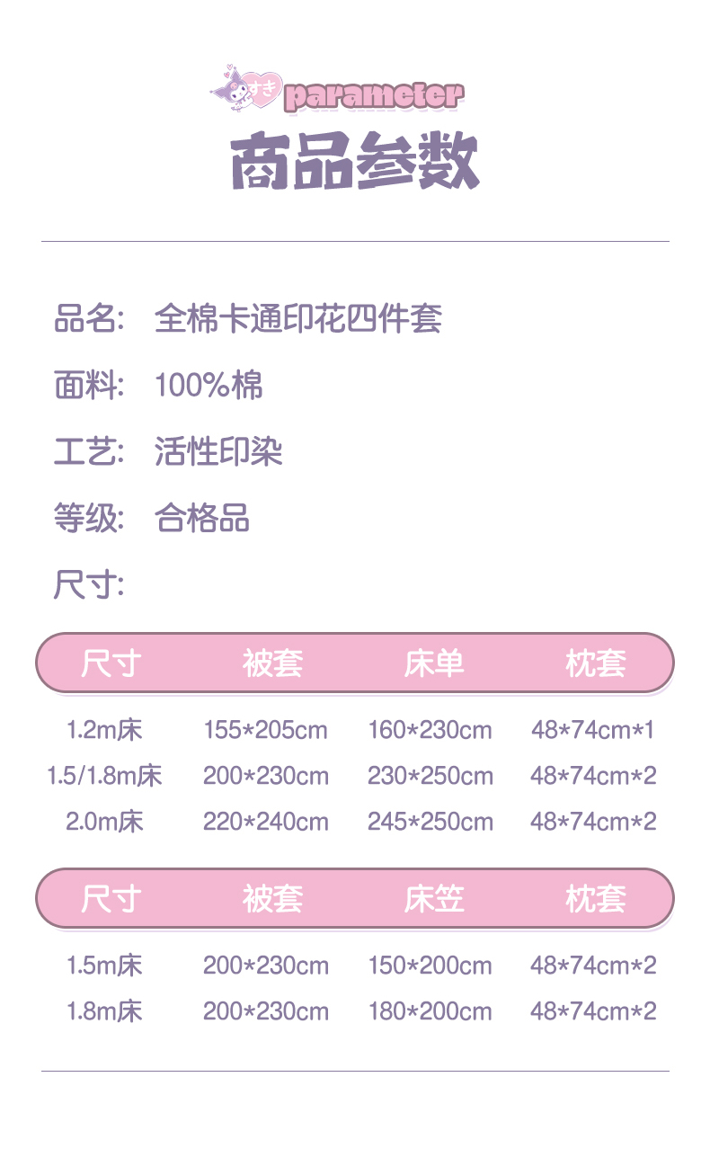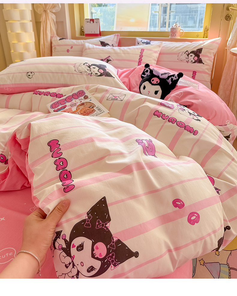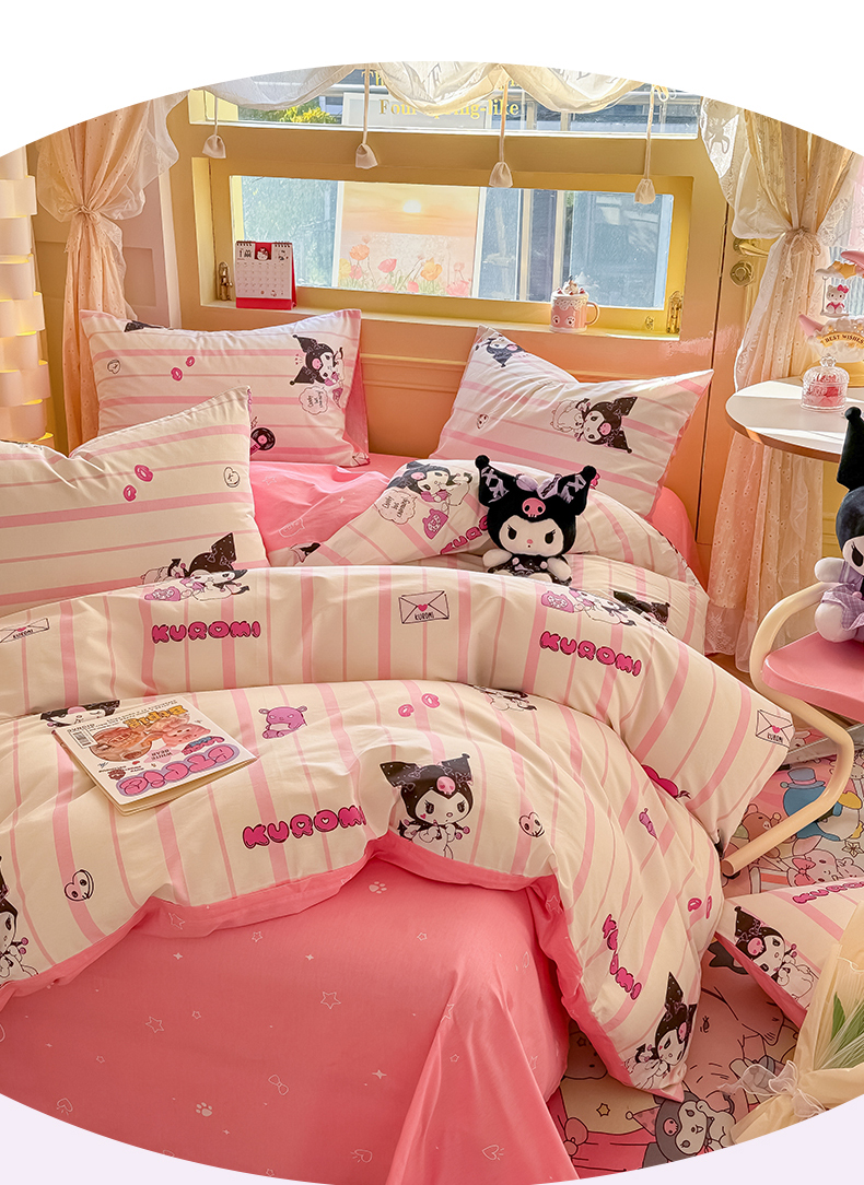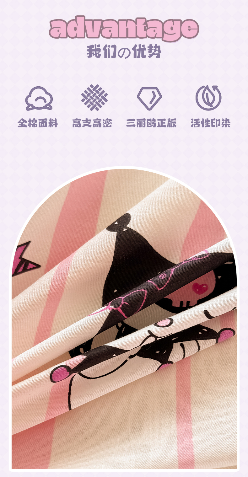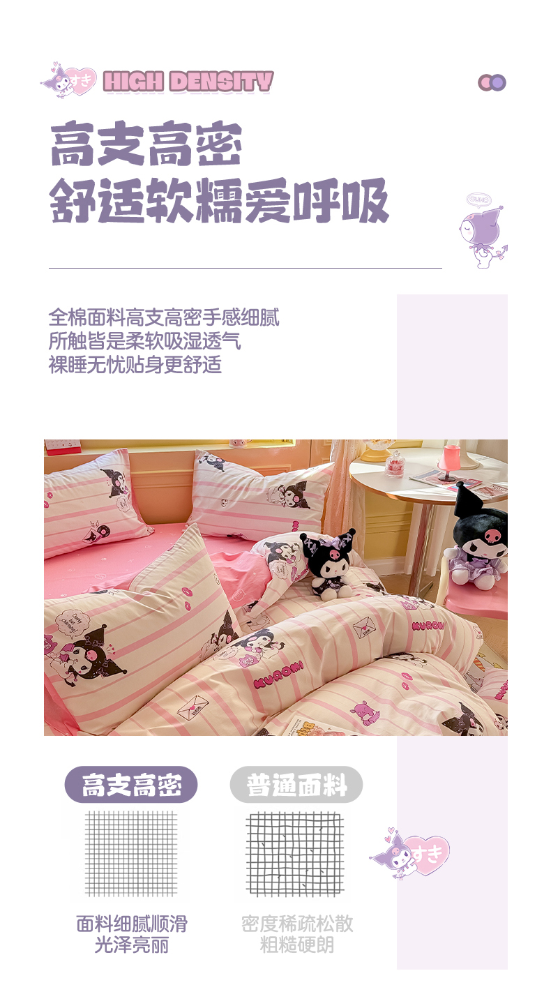 (总)蓝邻家纺 2024新款三丽鸥正版授权学生宿舍全棉印花四件套,甜甜库洛米,粉格美乐蒂,米酷粉,米酷紫,妙可乐园,牛奶大耳狗,玉桂狗
