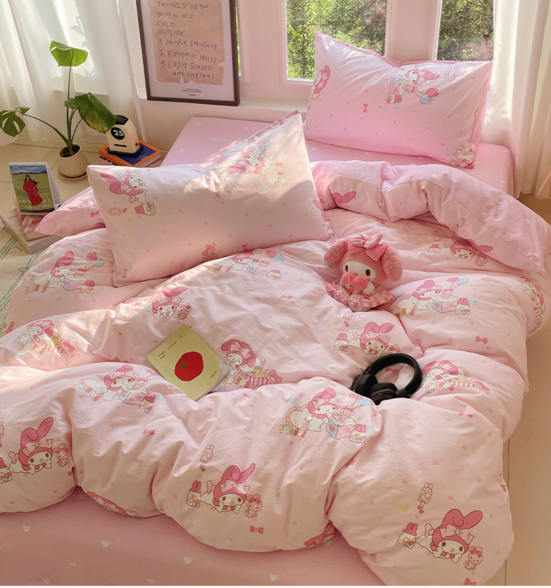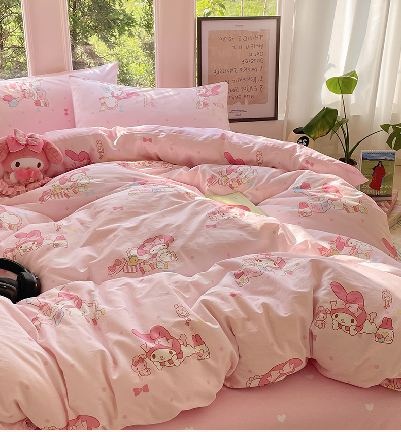 (总)蓝邻家纺 2024新款三丽鸥正版授权学生宿舍全棉印花四件套,甜甜库洛米,粉格美乐蒂,米酷粉,米酷紫,妙可乐园,牛奶大耳狗,玉桂狗