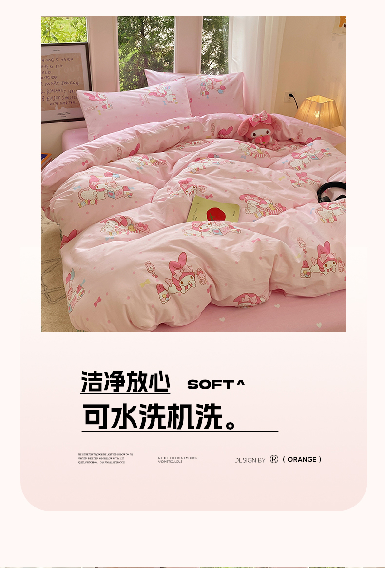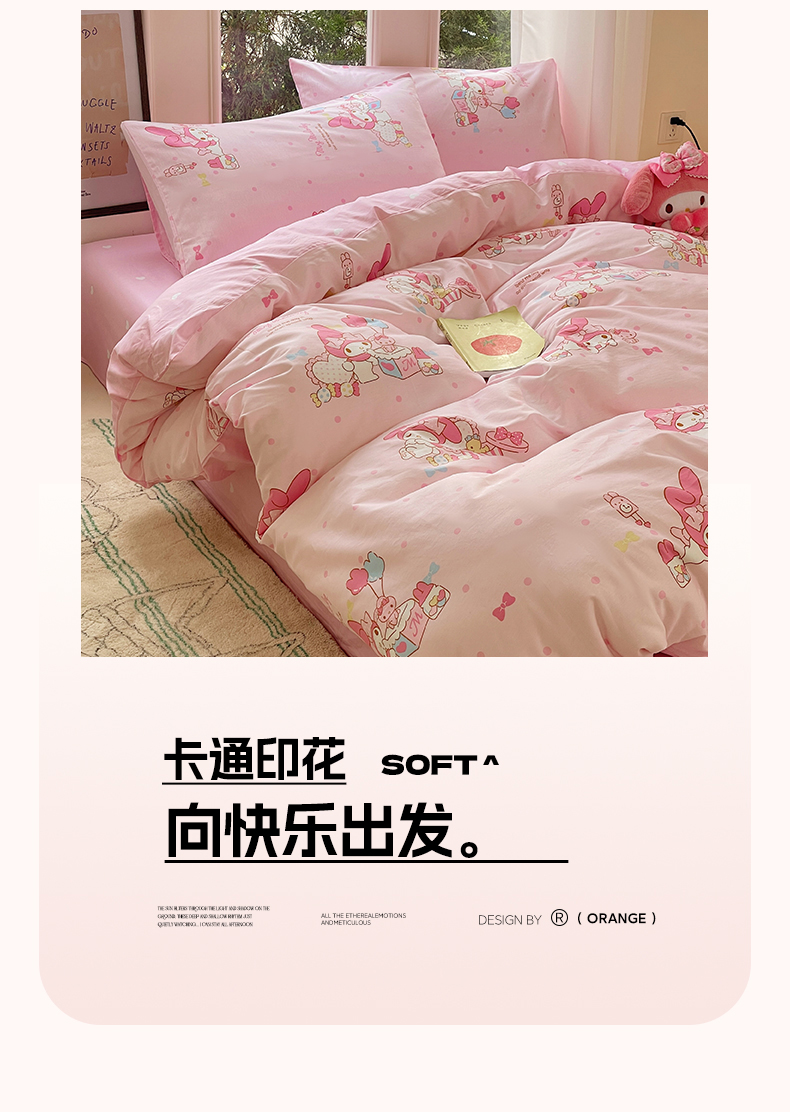 蓝邻家纺 2025年新款三丽鸥正版授权全棉印花四件套系列-大床图 童趣美乐蒂