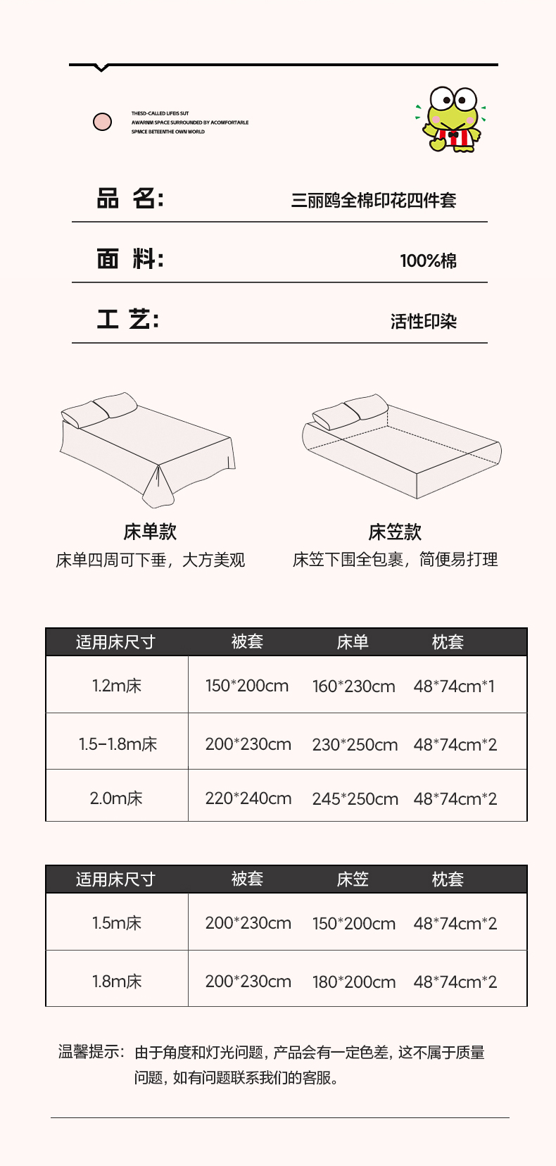 3、通州区市场监督局友情提醒,近期涉及到床上用品不褪色不掉毛不缩水的投诉和以世界知名品牌图案为面料的床品举报较多。请各商家自检自查,对照整改或进行下架处理。
