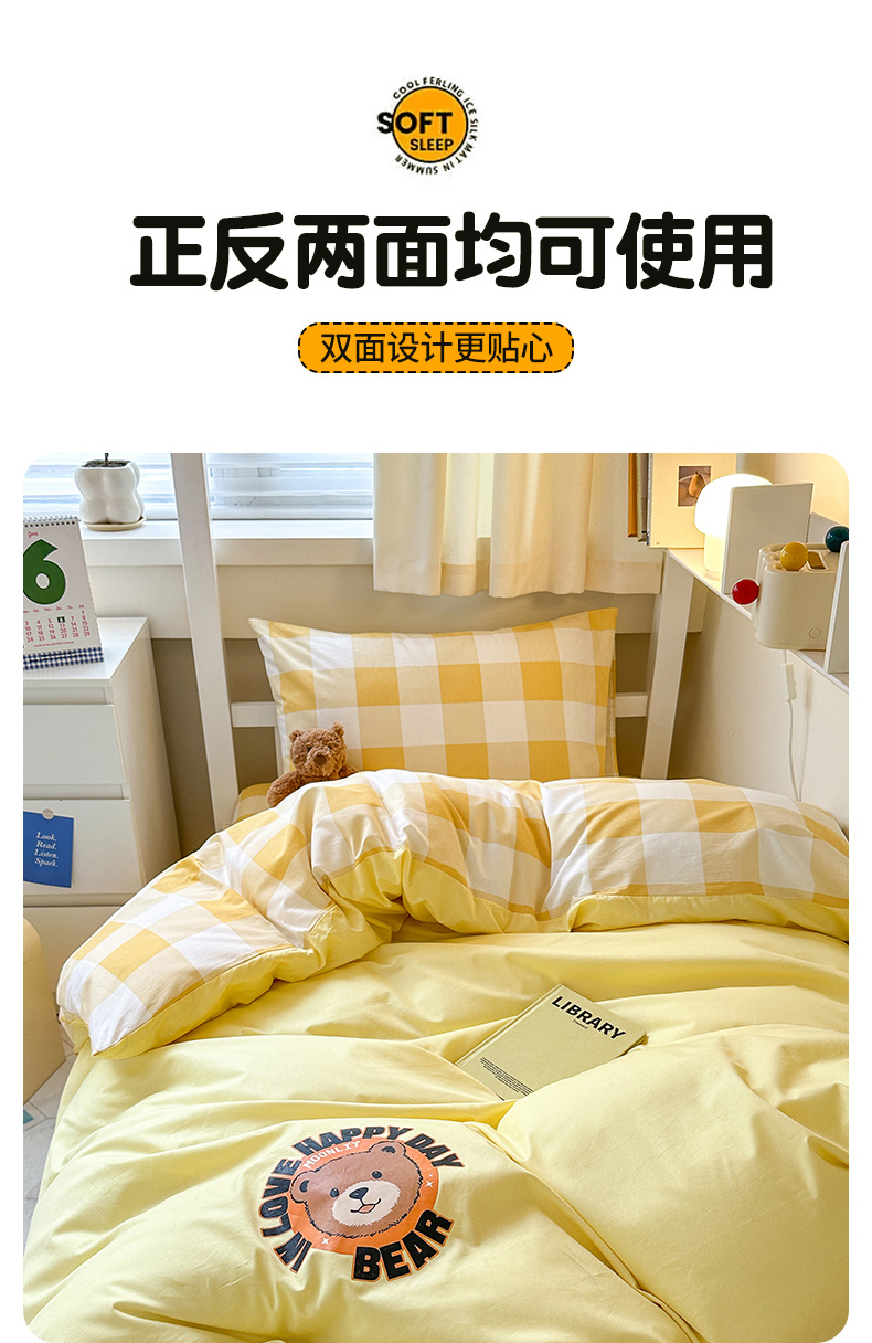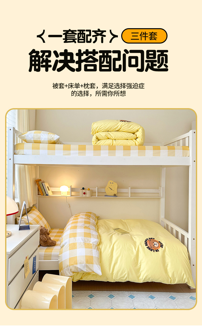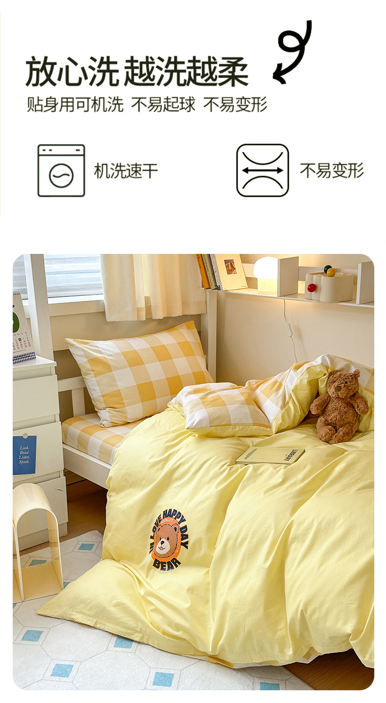 当前位置: 91家纺网 > 商品网购 > 床品套件 > 三件套 > 梧桐树 2025新款纯色双拼学生三件套 派对熊-奶油黄
