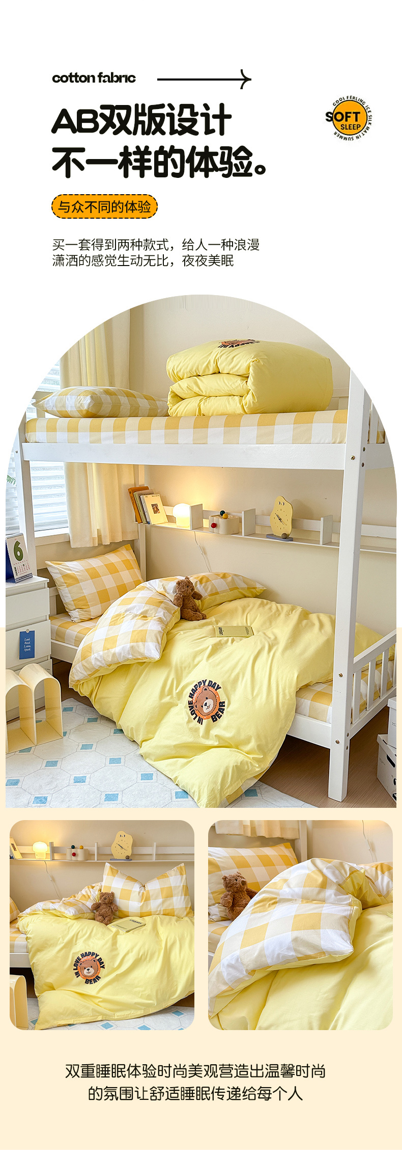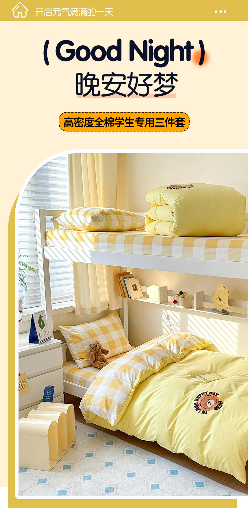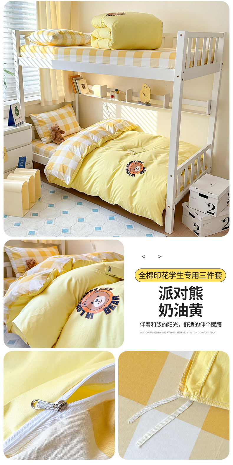 当前位置: 91家纺网 > 商品网购 > 床品套件 > 三件套 > 梧桐树 2025新款纯色双拼学生三件套 派对熊-奶油黄