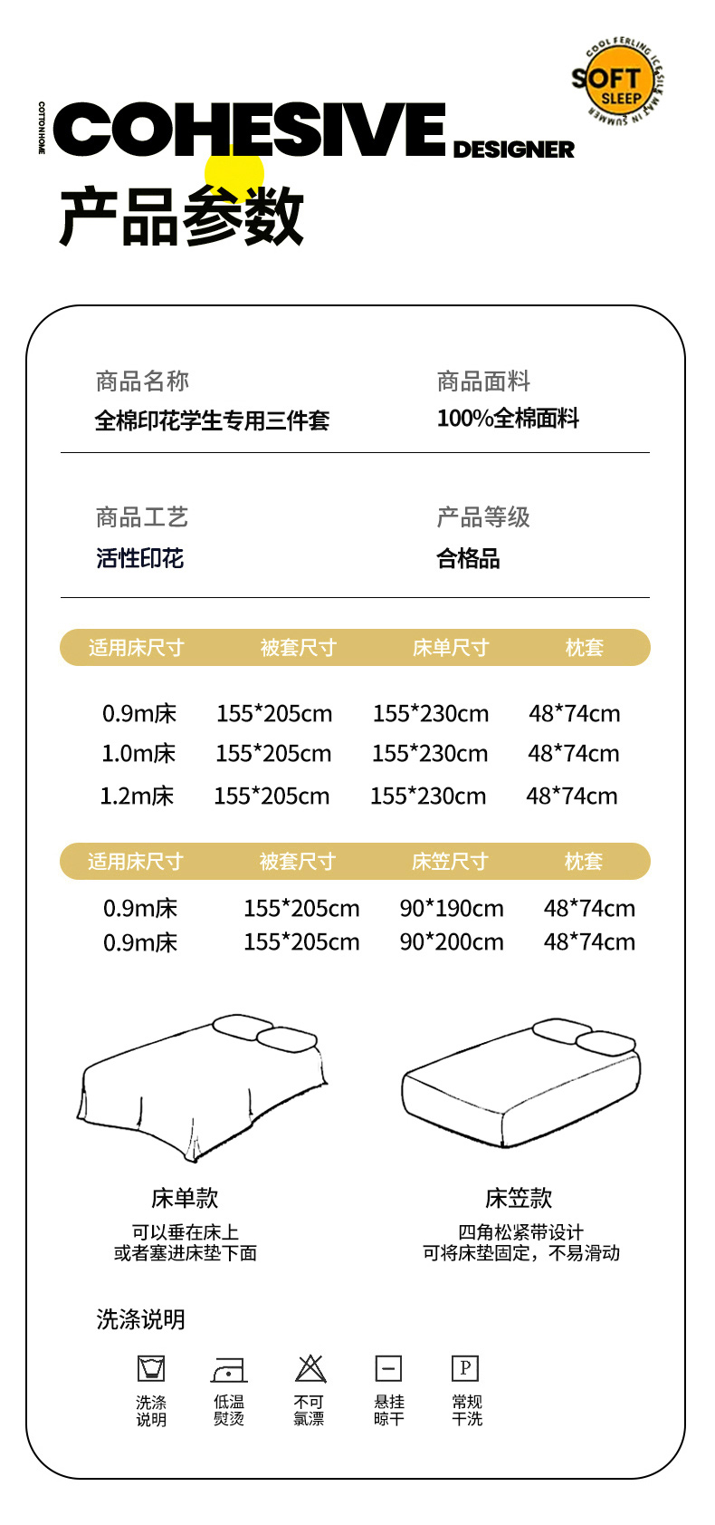 0.9m床单款三件套【被套1.55*2.05床单1.55*230 枕套48*74*1只】 | ¥85.00 |
