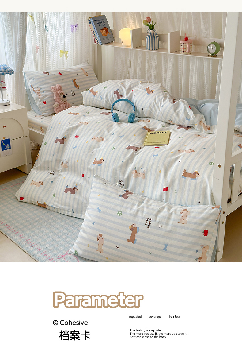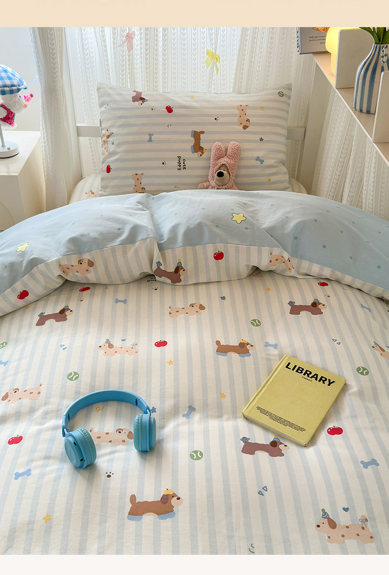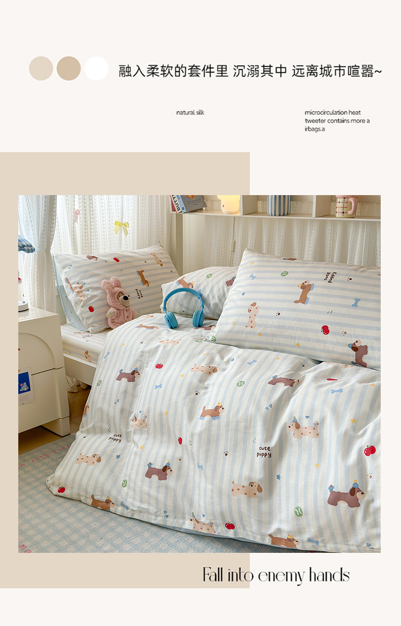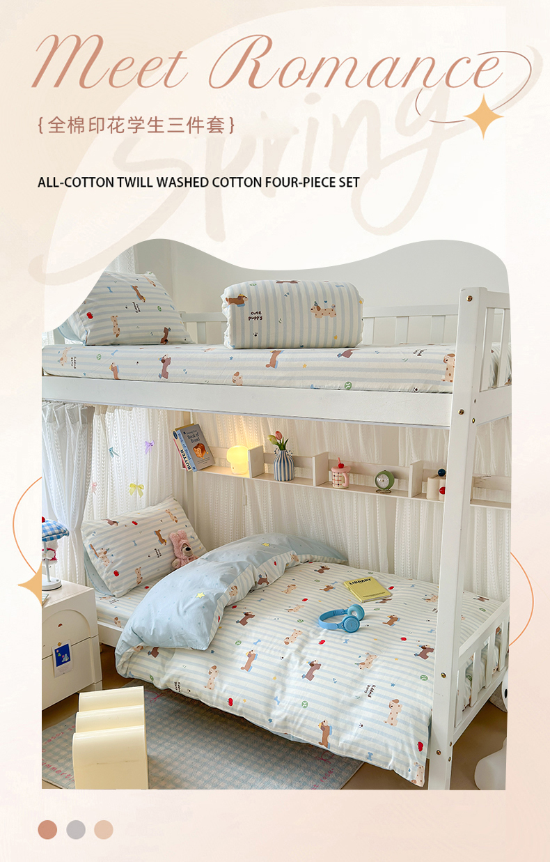 当前位置: 91家纺网 > 商品网购 > 床品套件 > 三件套 > 曼之夏 2025新款全棉纯棉印花学生宿舍上下铺三件套 椰奶小腊肠