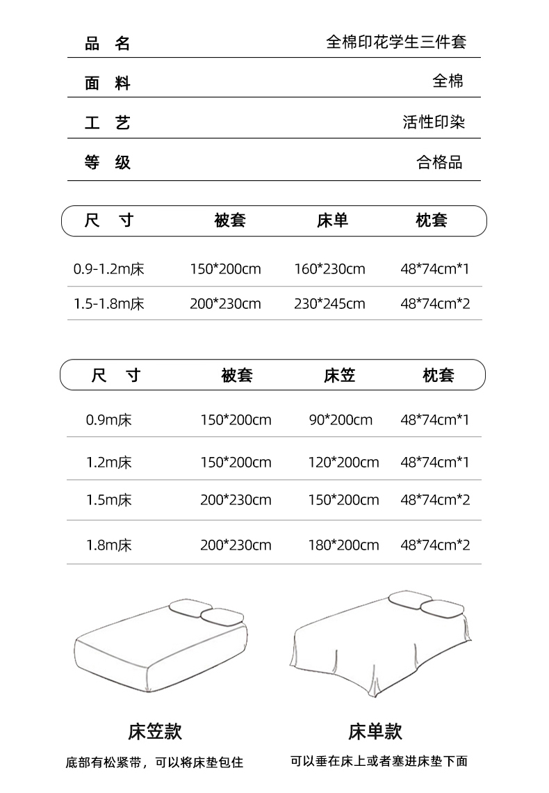 【床单款】0.9三件套-被套150x200 | ¥68.00 |