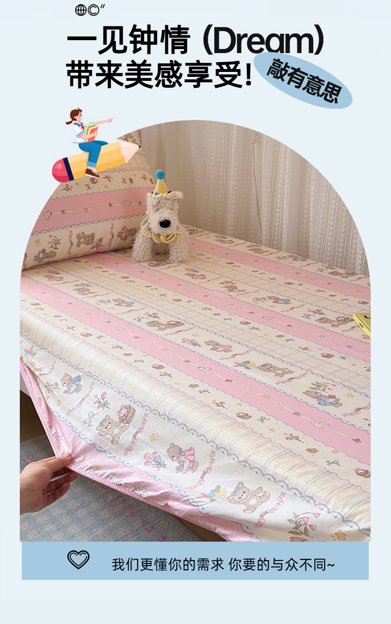 (总)曼之夏 2025新款全棉纯棉印花学生宿舍上下铺单床笠床笠单件单品床笠,茶茶狗,奶昔小熊,格子猫,嗨皮狗,开心屋,可爱多,可可汪,玛奇朵,泡芙小象,曲奇小狗,趣味熊,甜甜圈,甜心猫咪,童画,小狗日记,椰奶小腊肠,樱桃熊仔