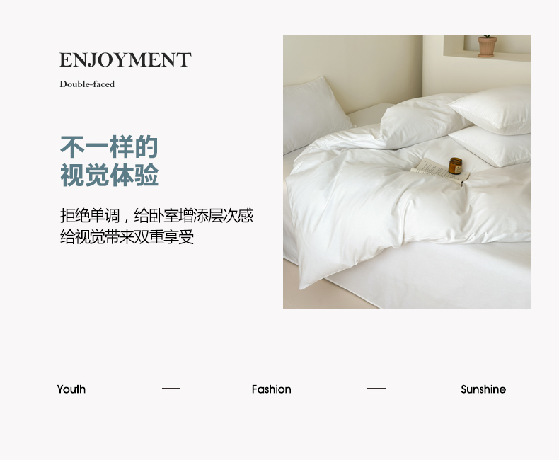 商品名称:(总)兰紫橙家纺 2025新款简约款13372喷气全棉纯色双拼纯色双拼四件套