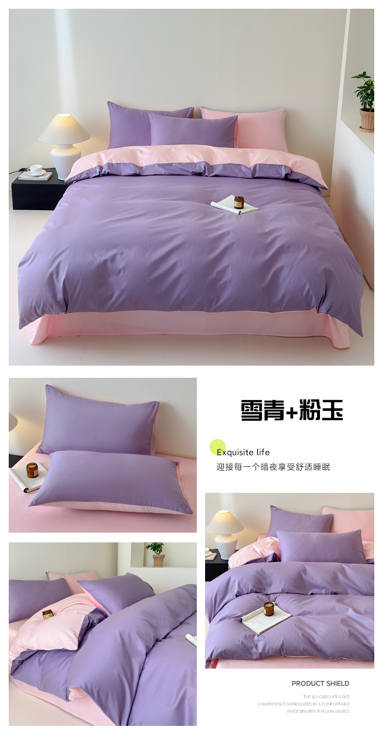 (总)兰紫橙家纺 2025新款简约款13372喷气全棉纯色双拼纯色双拼四件套