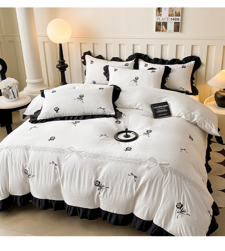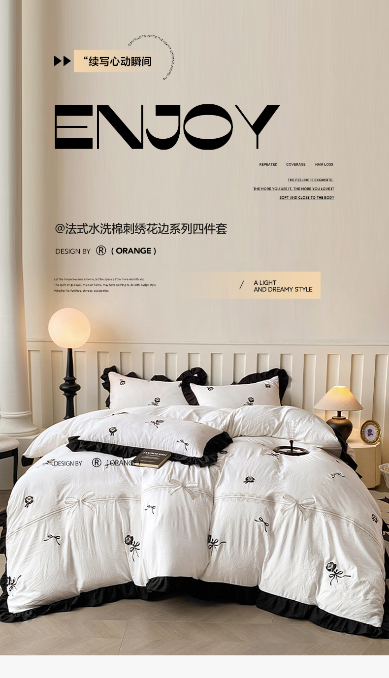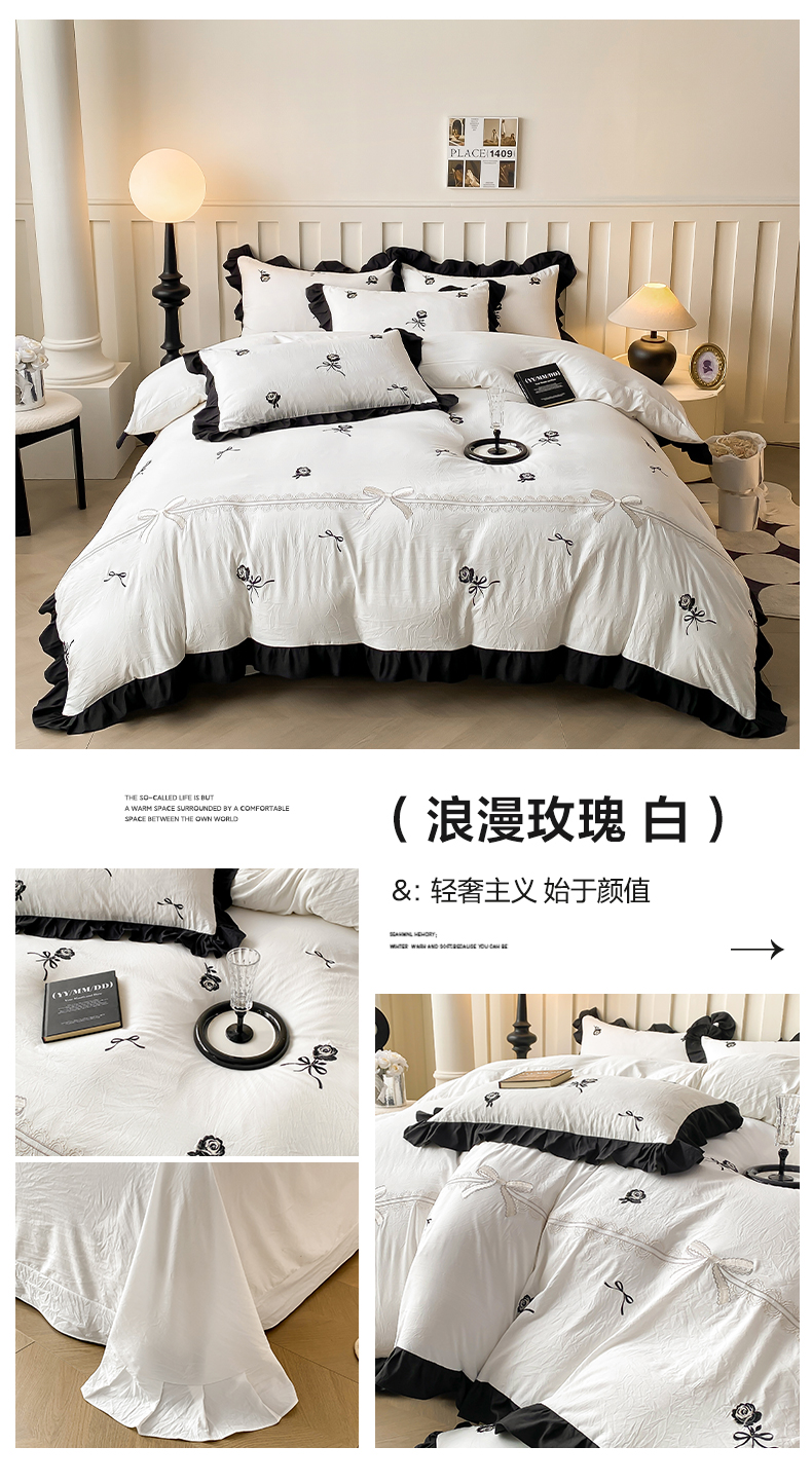 商品名称:(总)大麦乐田 2025爆款韩版法式 满版刺绣大宽花边吊边款四件套