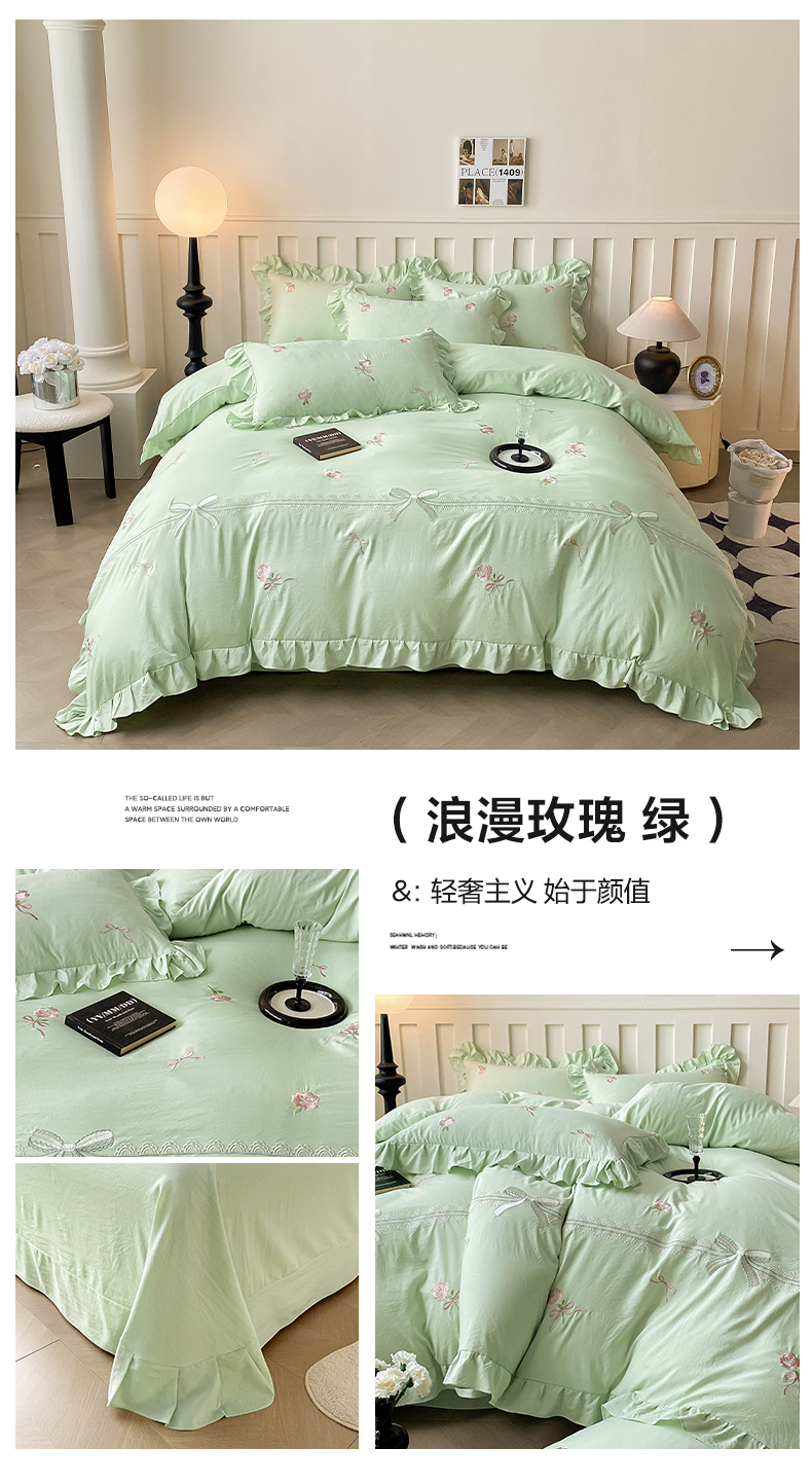 (总)大麦乐田 2025新款四季亲肤磨毛立体花刺绣工艺款四件套-花香蝶舞,花香蝶舞-香粉玉,花香蝶舞-宾利兰,花香蝶舞-梦幻紫,花香蝶舞-绅士灰,花香蝶舞-奶茶绿,花香蝶舞-大红