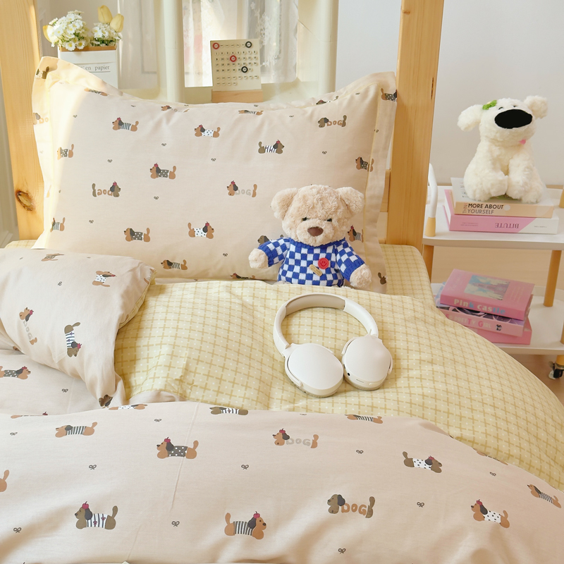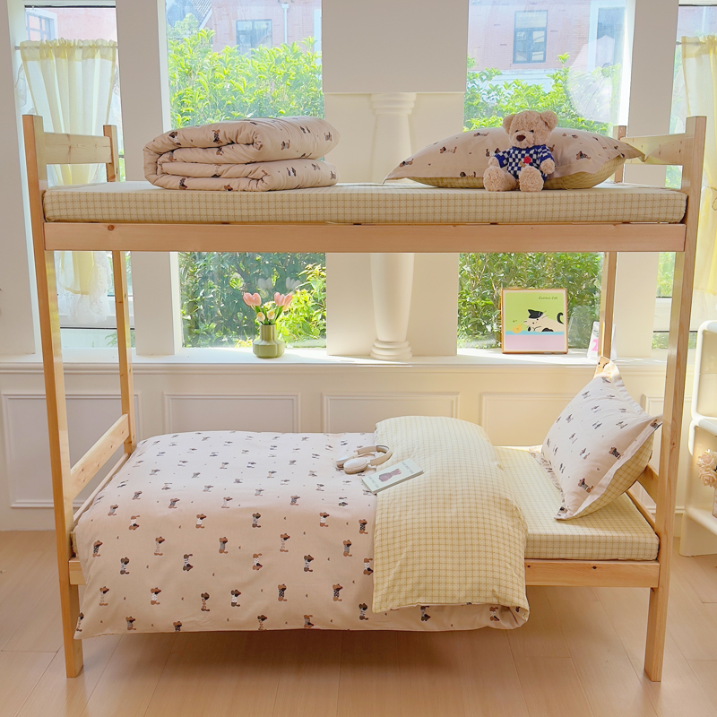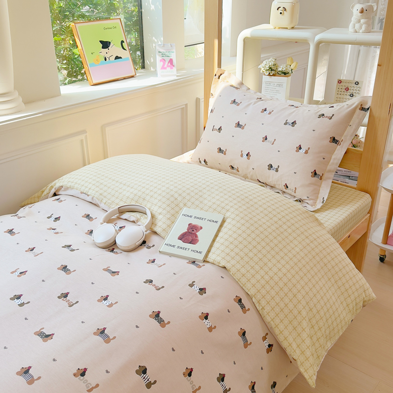 铭博家纺 新款100%全棉印花学生季宿舍上下铺三件套 无忧腊肠