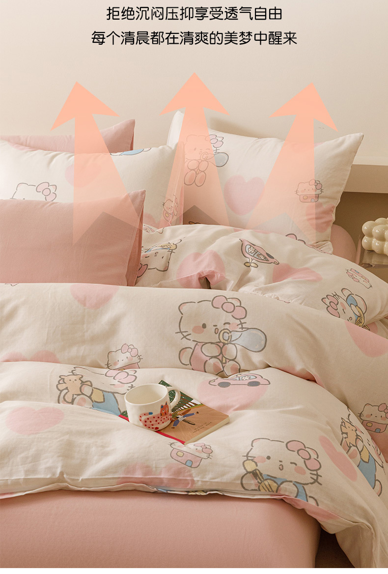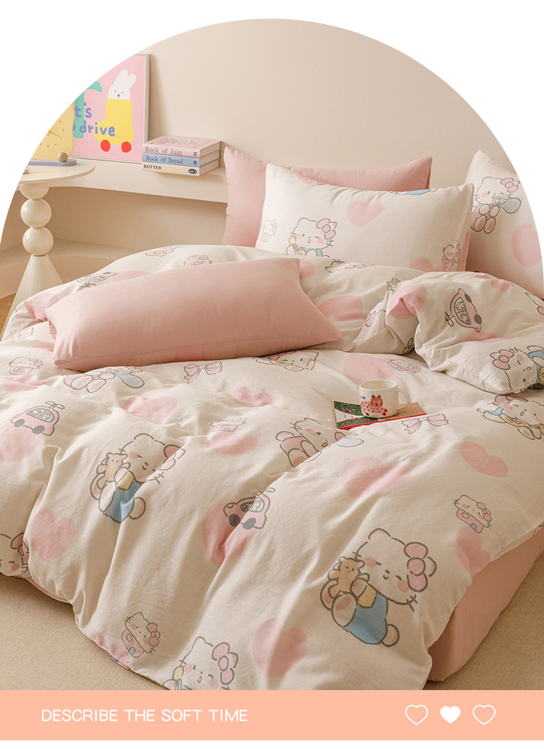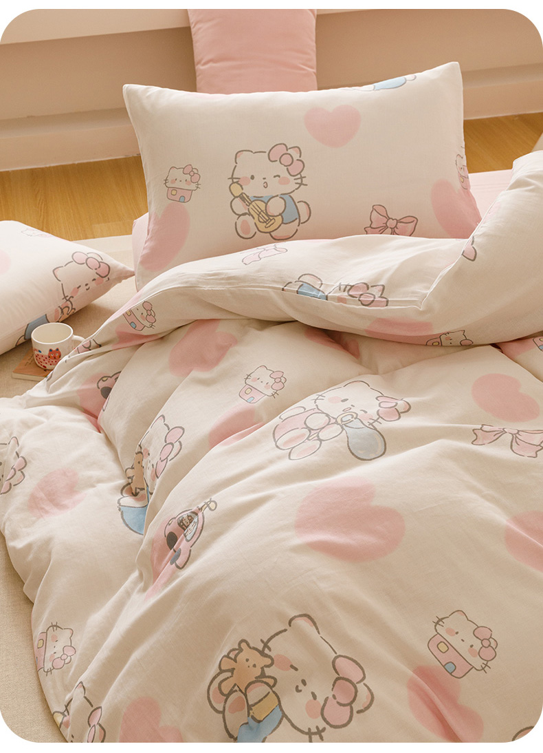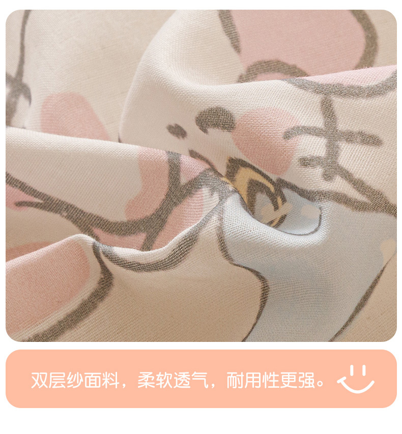 商品名称:瑞米家居 2025新款A类全棉儿童双层纱四件套 粉樱小猫