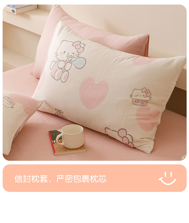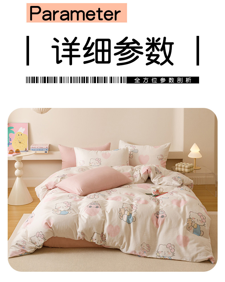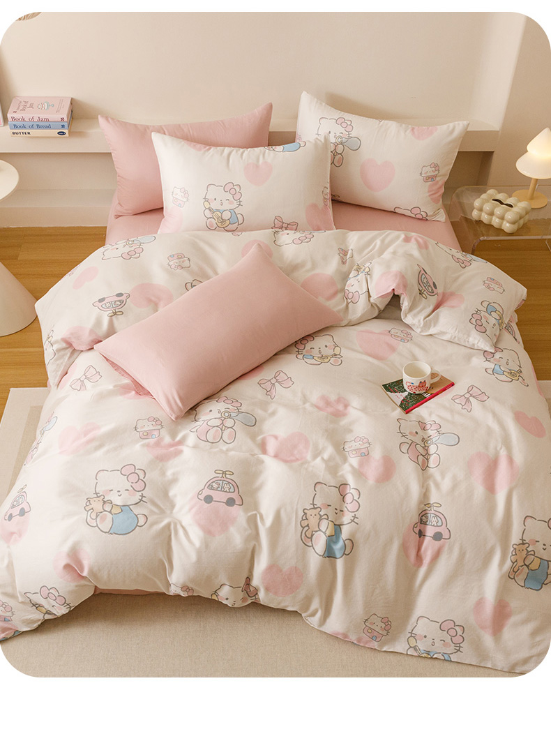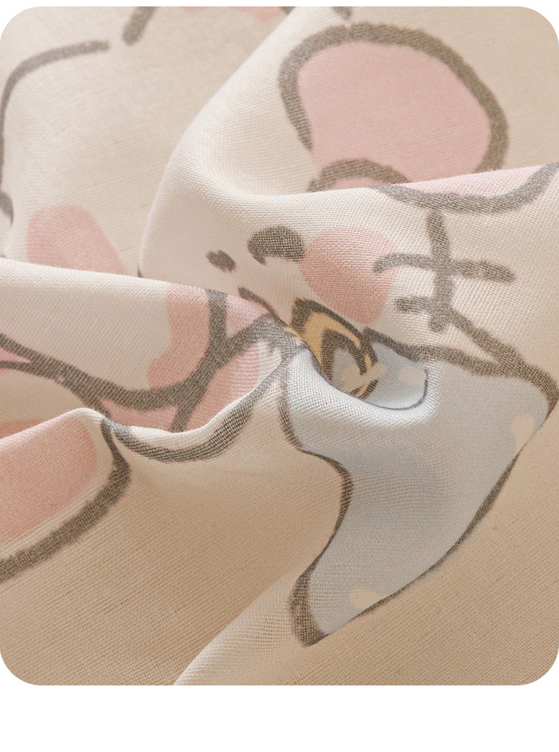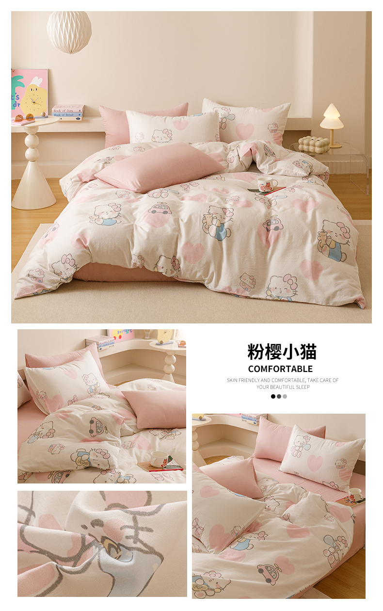 商品名称:瑞米家居 2025新款A类全棉儿童双层纱四件套 粉樱小猫