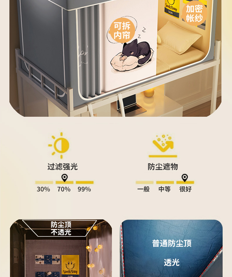 90上下铺通用(带靠墙帘):90宽x190长x90-120高(高度伸缩) | ¥105.00 |