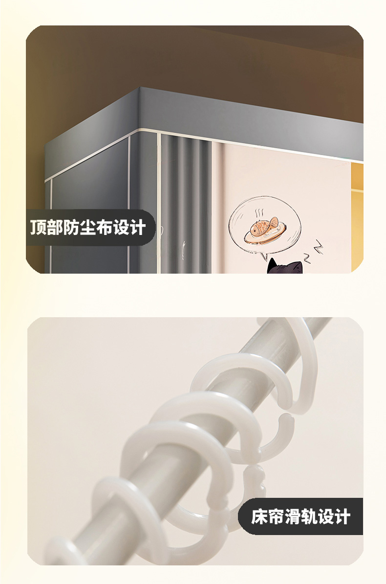 90上铺(不带靠墙帘):90宽x190长x110高(免安装)一秒打开 | ¥105.00 |