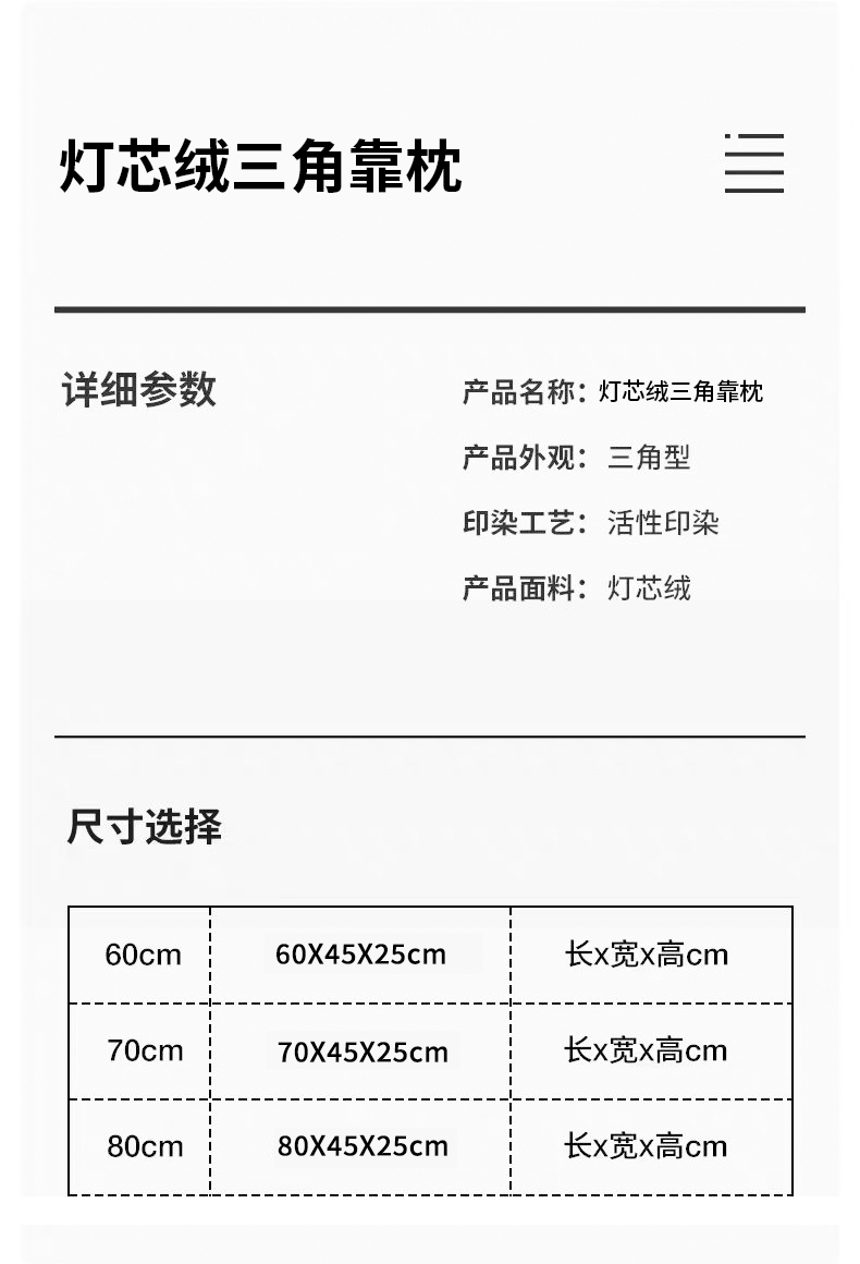商品名称:沐沐家纺2026新款灯芯绒三角靠枕 咖啡