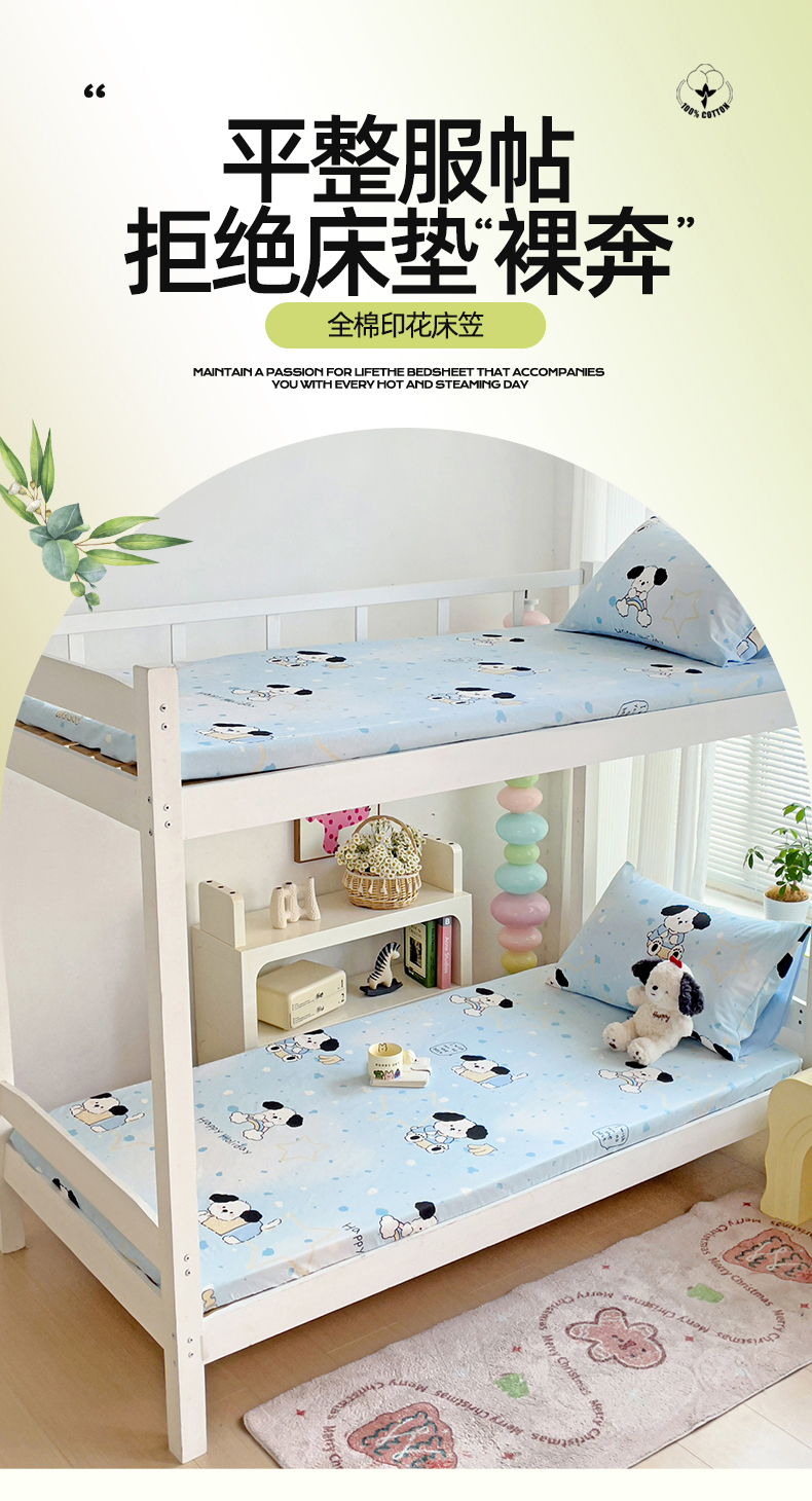 (总)名兮家居 2025新款全棉纯棉13372学生印花上下铺床笠单床笠单品床笠单件床笠