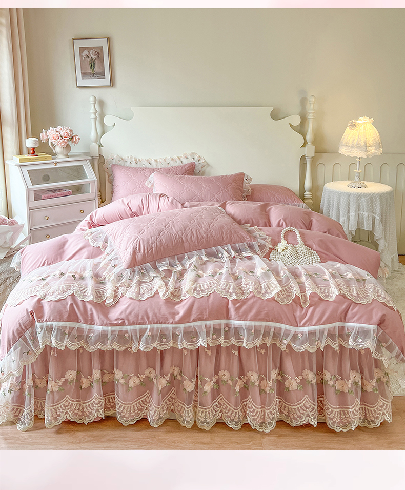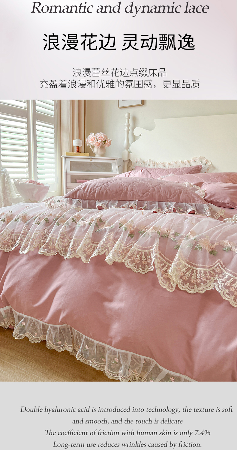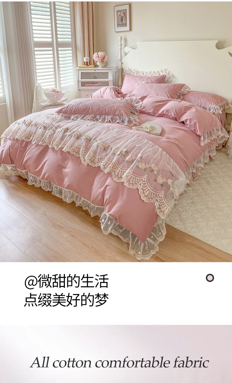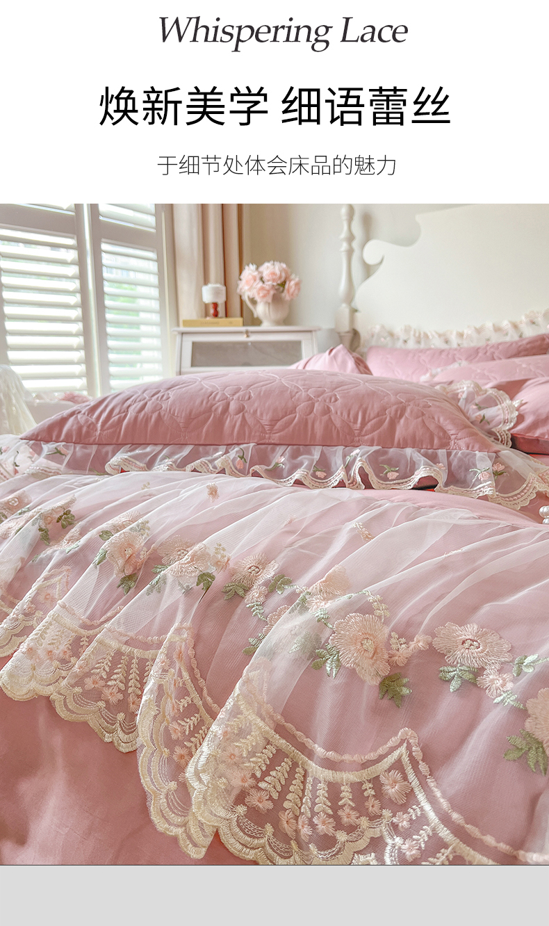 当前位置: 91家纺网 > 商品网购 > 床上用品 > 床裙 > 网红馆 2025新款蕾丝花边全棉床裙四件套晨暮花间系列 绯红