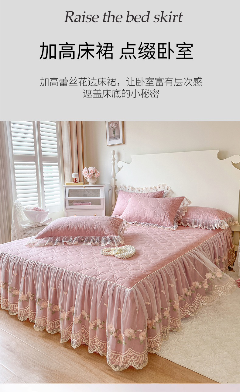 (总)网红馆(ck家纺) 2026新款全棉蕾丝花边床裙款床笠晨暮花间系列,绯红,粉色,麦绿,米色,浅紫,雾蓝
