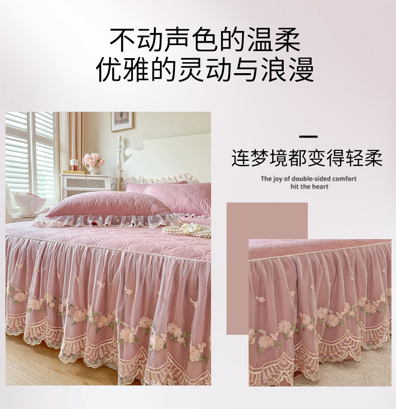 • 91家纺网 家纺一手货源 找家纺 (总)网红馆(ck家纺) 2026新款全棉蕾丝花边床裙款床笠晨暮花间系列,绯红,粉色,麦绿,米色,浅紫,雾蓝