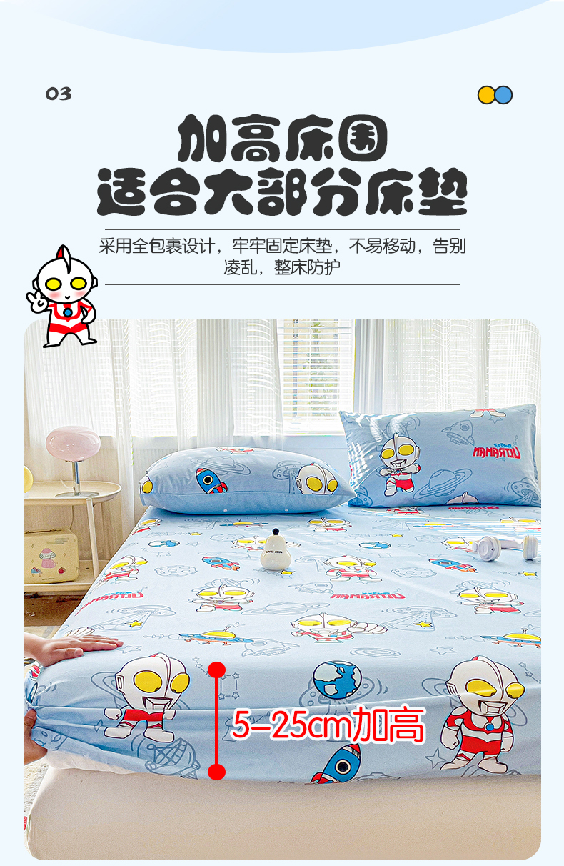 • 91家纺网 家纺一手货源 找家纺 名兮家居 2025新款全棉纯棉13372经典奥特曼-三丽鸥成人床床笠单件单床笠【含防伪标】 太空奥特曼