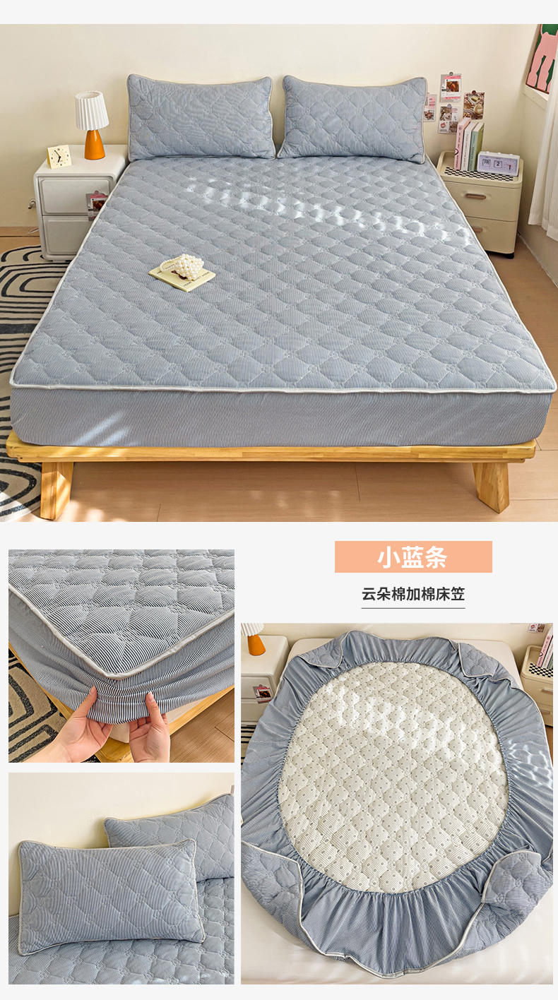 • 91家纺网 家纺一手货源 找家纺 纽缦家纺 2025新款云朵棉亲肤加厚夹棉单品床笠床笠单件单床笠 小粉条