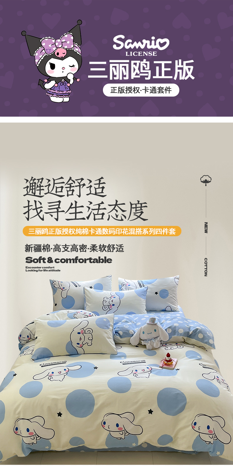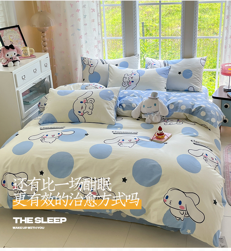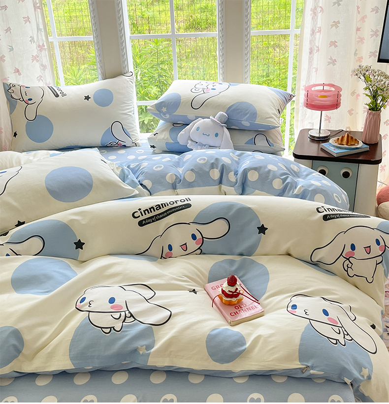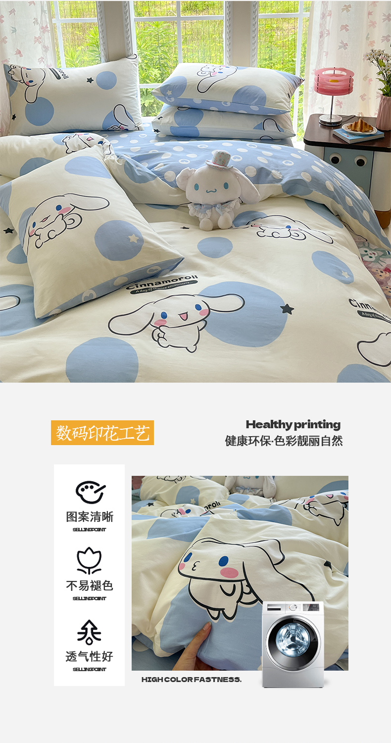 商品名称:(总)金爱家2025新款三丽鸥正版授权卡通数码印花混搭纯棉印花系列四件套