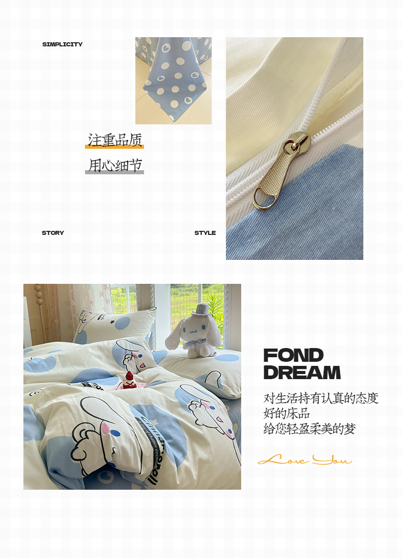 (总)金爱家 2025新款A类三丽鸥正版授权云柔水洗棉兔毛贴布绣刺绣软糯系列四件套,云柔水洗棉-贴布绣粉格KT,云柔水洗棉-贴布绣蓝格布丁狗,云柔水洗棉-贴布绣蓝格KT,云柔水洗棉-贴布绣美乐蒂,云柔水洗棉-贴布绣萌萌布丁狗,云柔水洗棉-贴布绣你好大耳狗,云柔水洗棉-贴布绣紫格库洛米