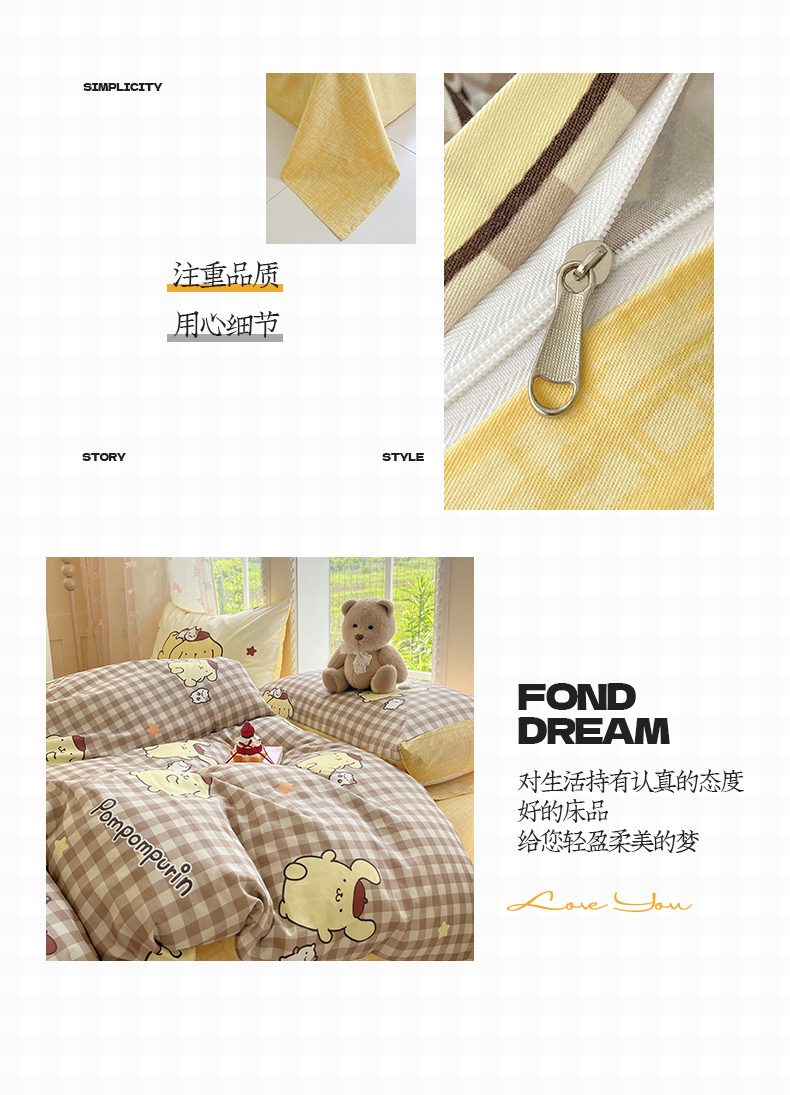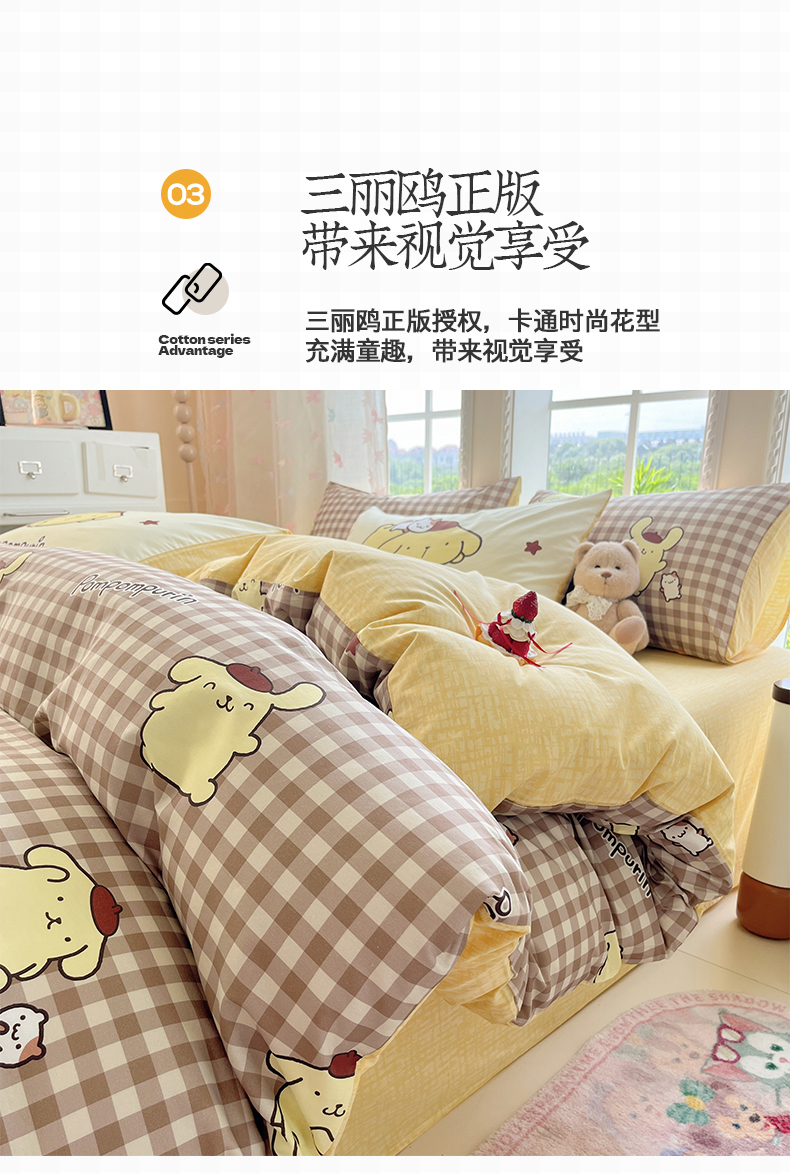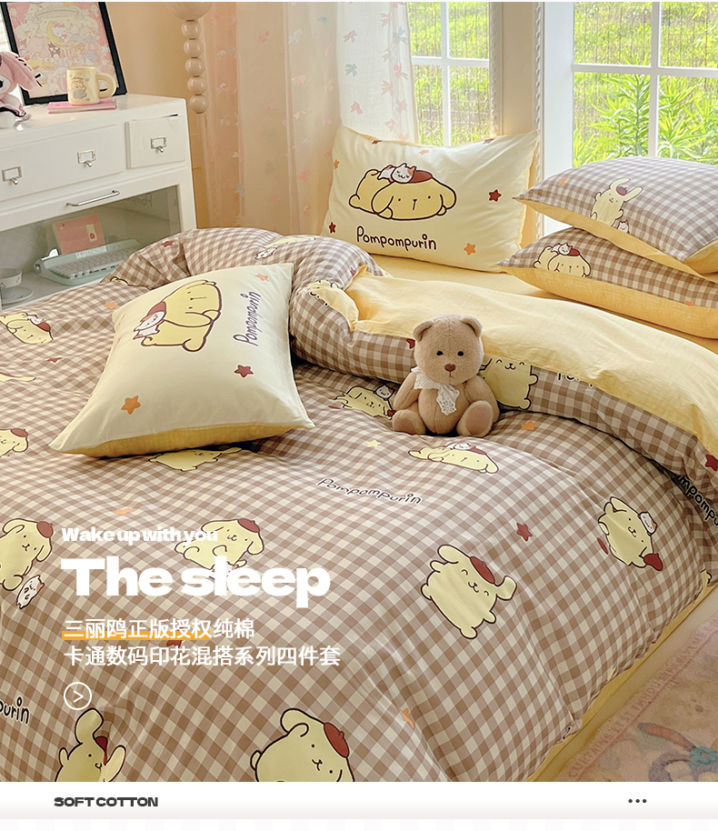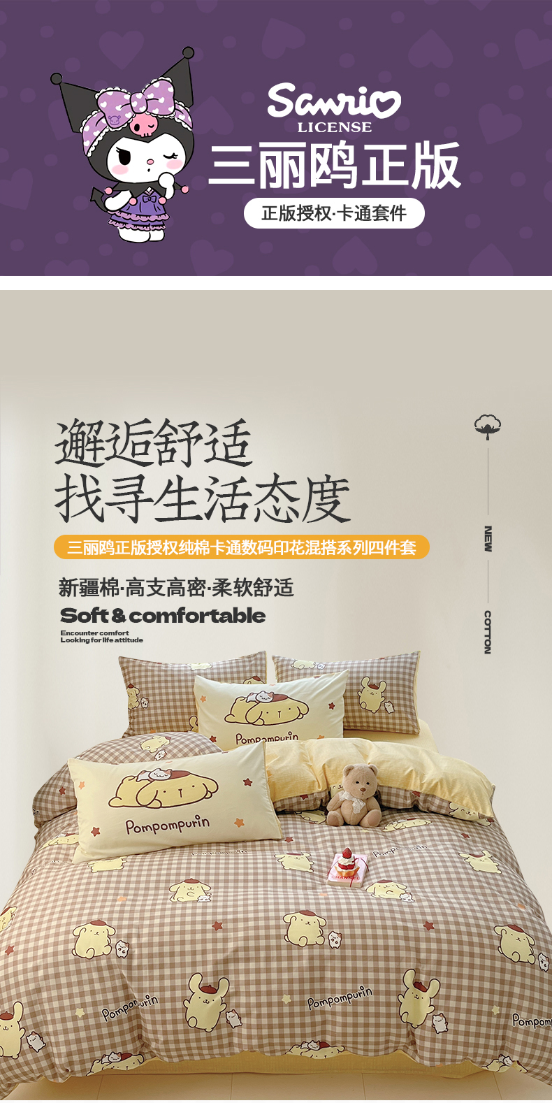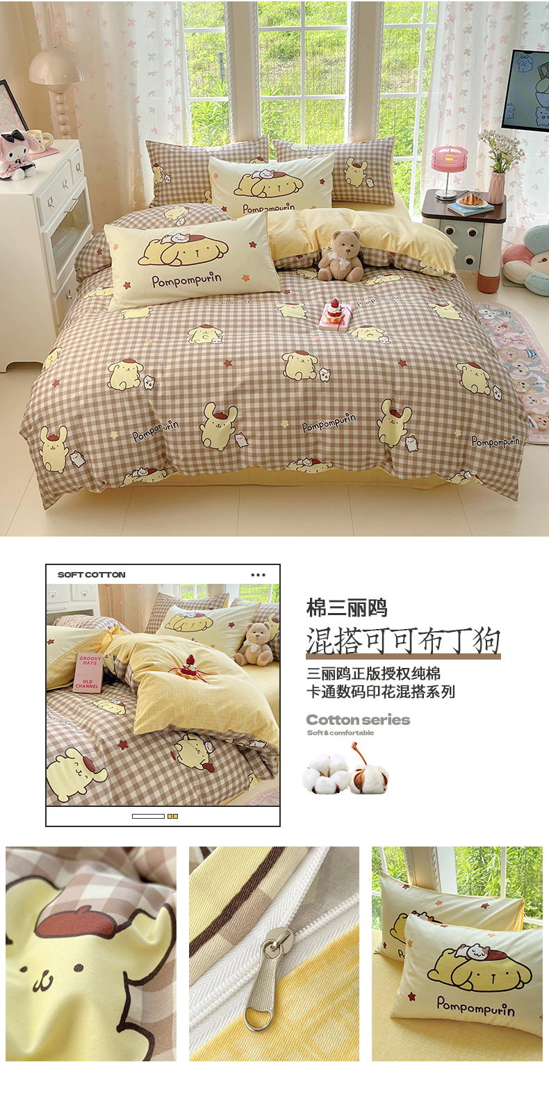 当前位置: 91家纺网 > 商品网购 > 床品套件 > 四件套 > 全棉普通四件套 > 金爱家2025新款三丽鸥正版授权卡通数码印花混搭纯棉印花系列四件套 棉三丽鸥-混搭可可布丁狗