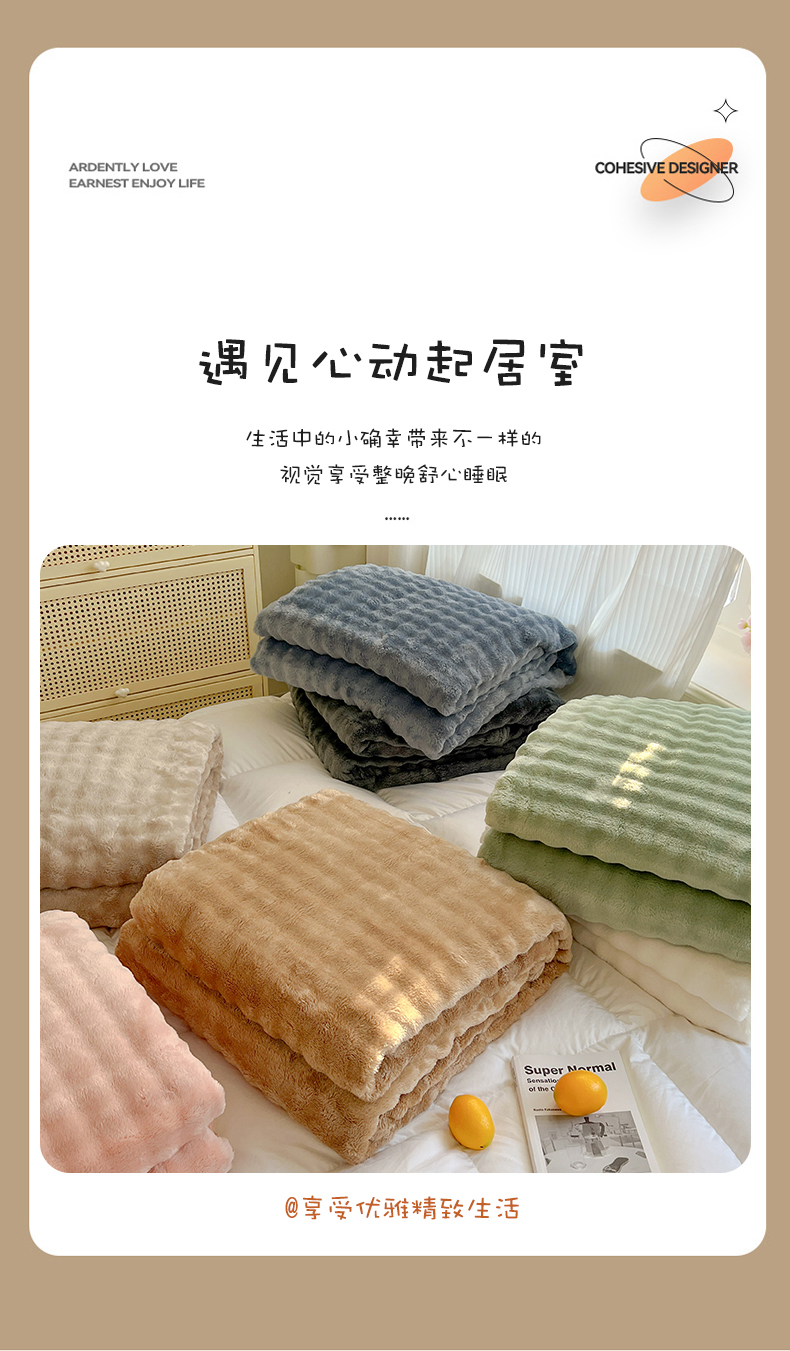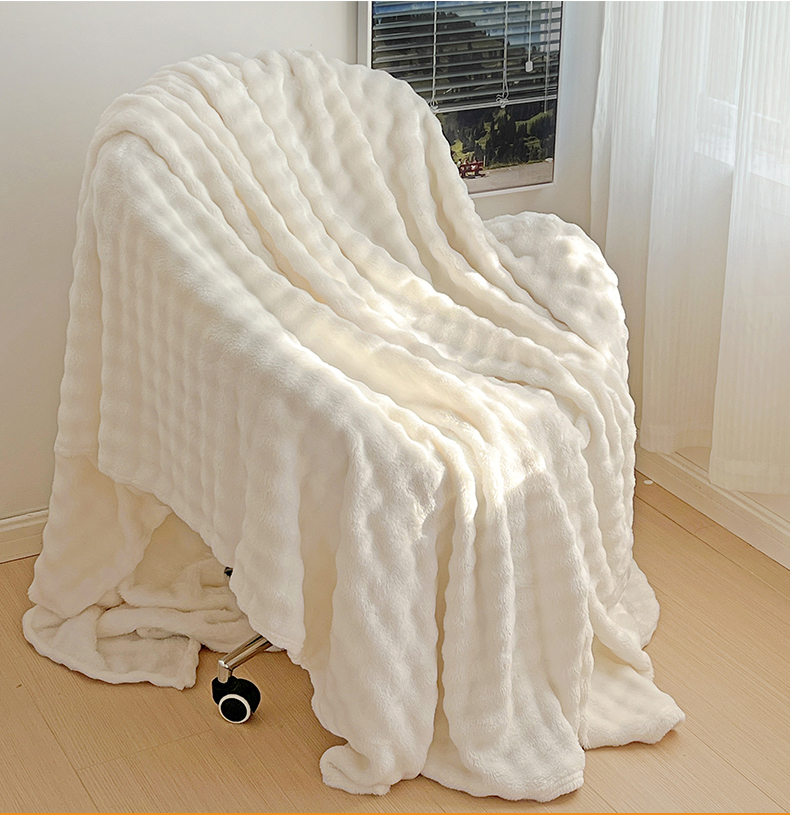 耀悦家纺 2025秋冬暖阳泡泡高克重牛奶绒双面泡泡毛毯毯子多功能盖毯外贸批发 暖阳泡泡-奶白