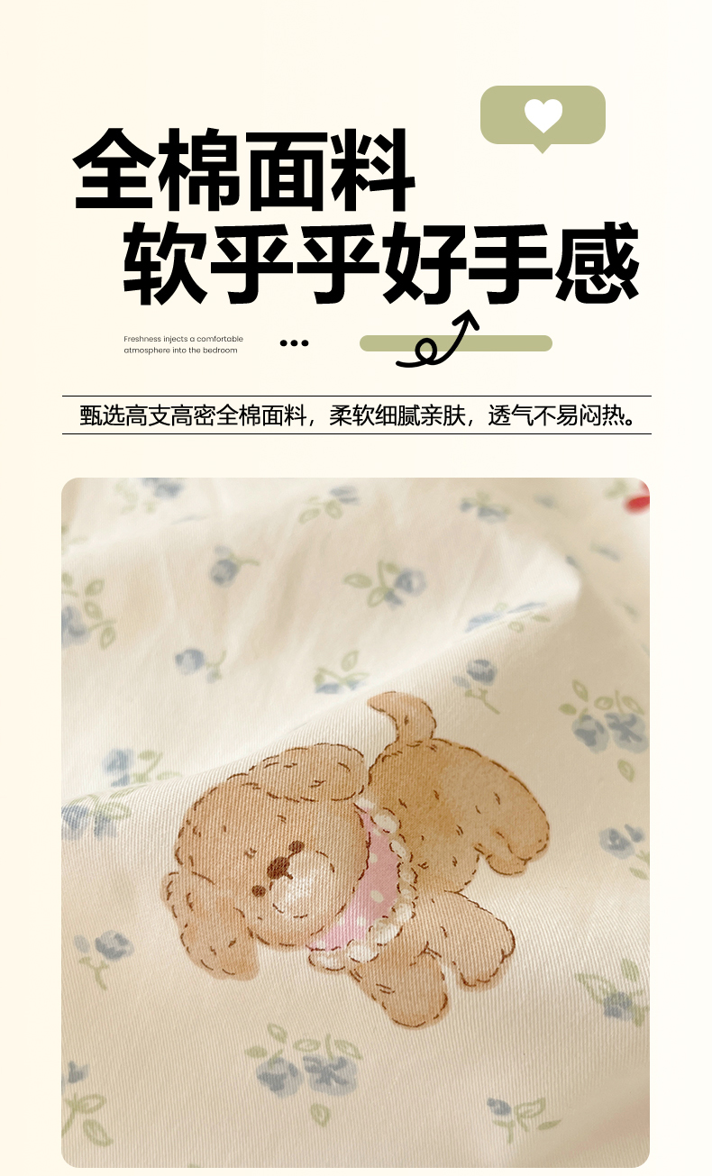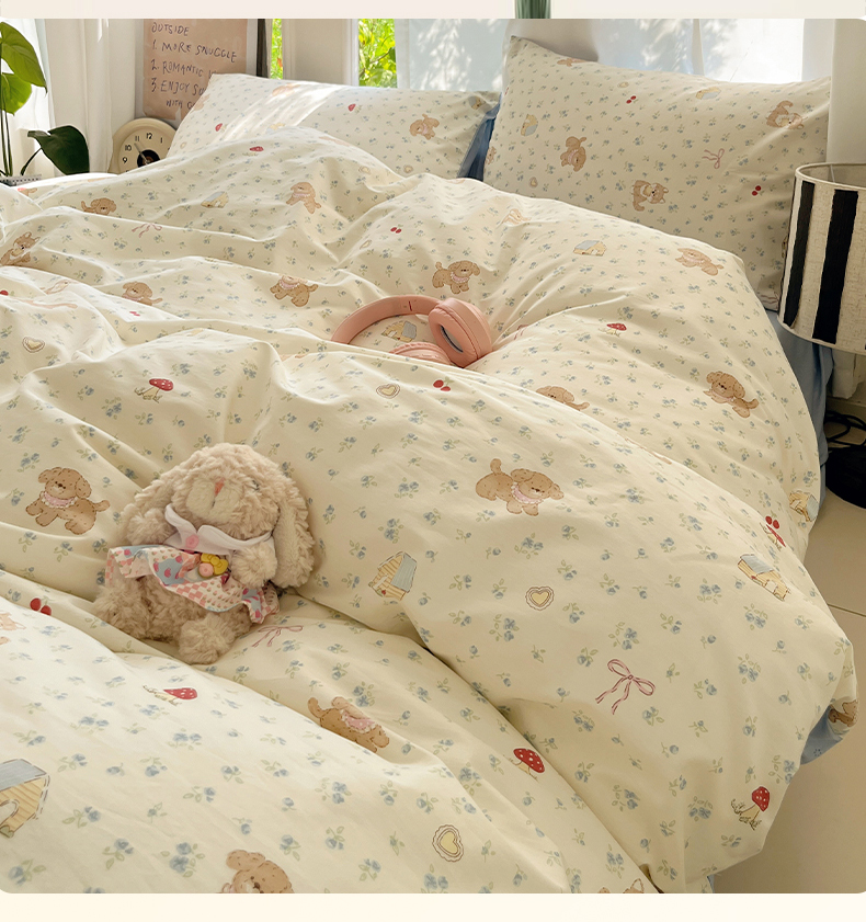 当前位置: 91家纺网 > 商品网购 > 床品套件 > 四件套 > 全棉普通四件套 > 吉象家纺 2025新款亲肤舒适全棉纯棉小清新卡通系列四件套 蓝碎花修狗