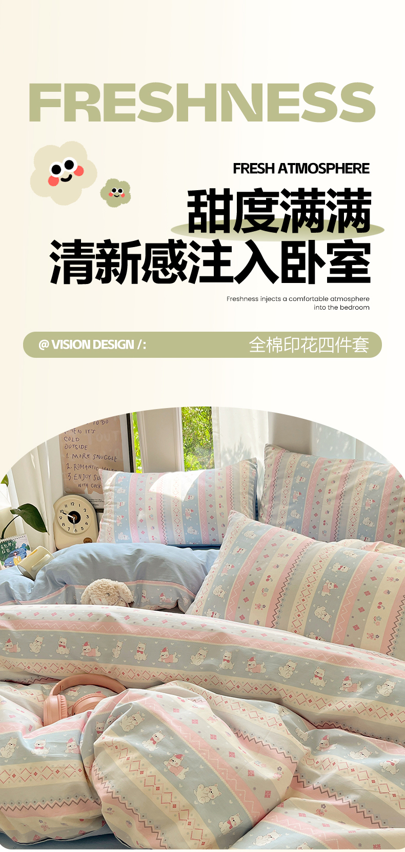 当前位置: 91家纺网 > 商品网购 > 床品套件 > 四件套 > 全棉普通四件套 > 吉象家纺 2025新款亲肤舒适全棉纯棉小清新卡通系列四件套 小狗笔记