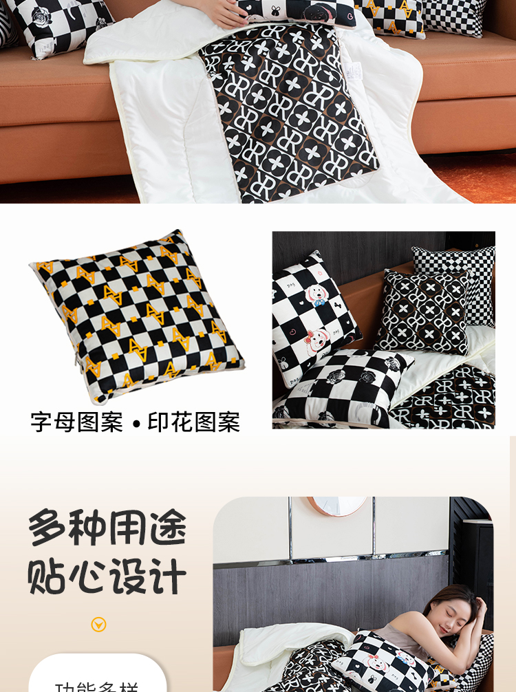 (总)新奇异 2025新款柿柿如意棉麻抱枕被,ZH,组合图仅供展示,成事,千鸟格,事事顺心,柿柿如意,心想事成