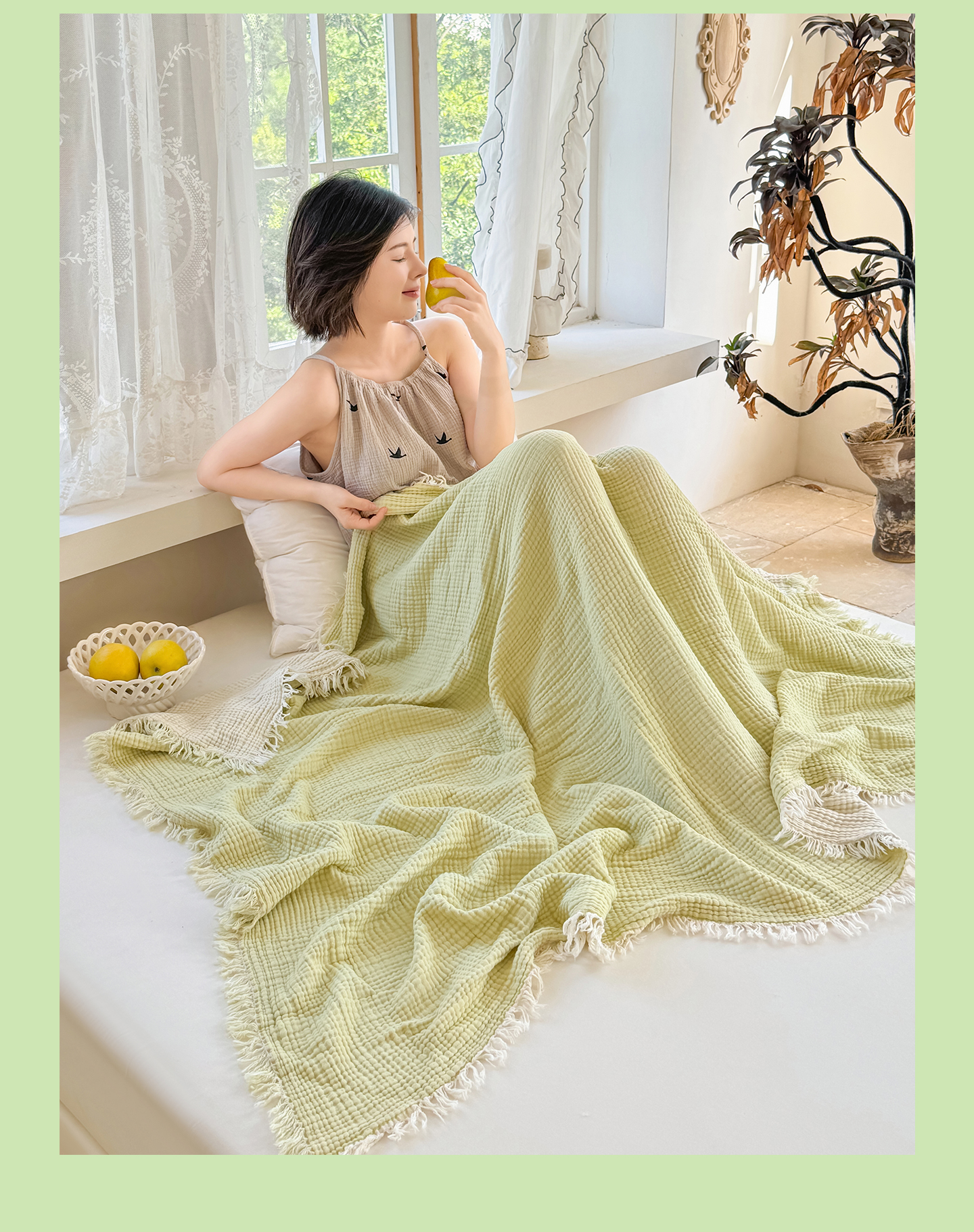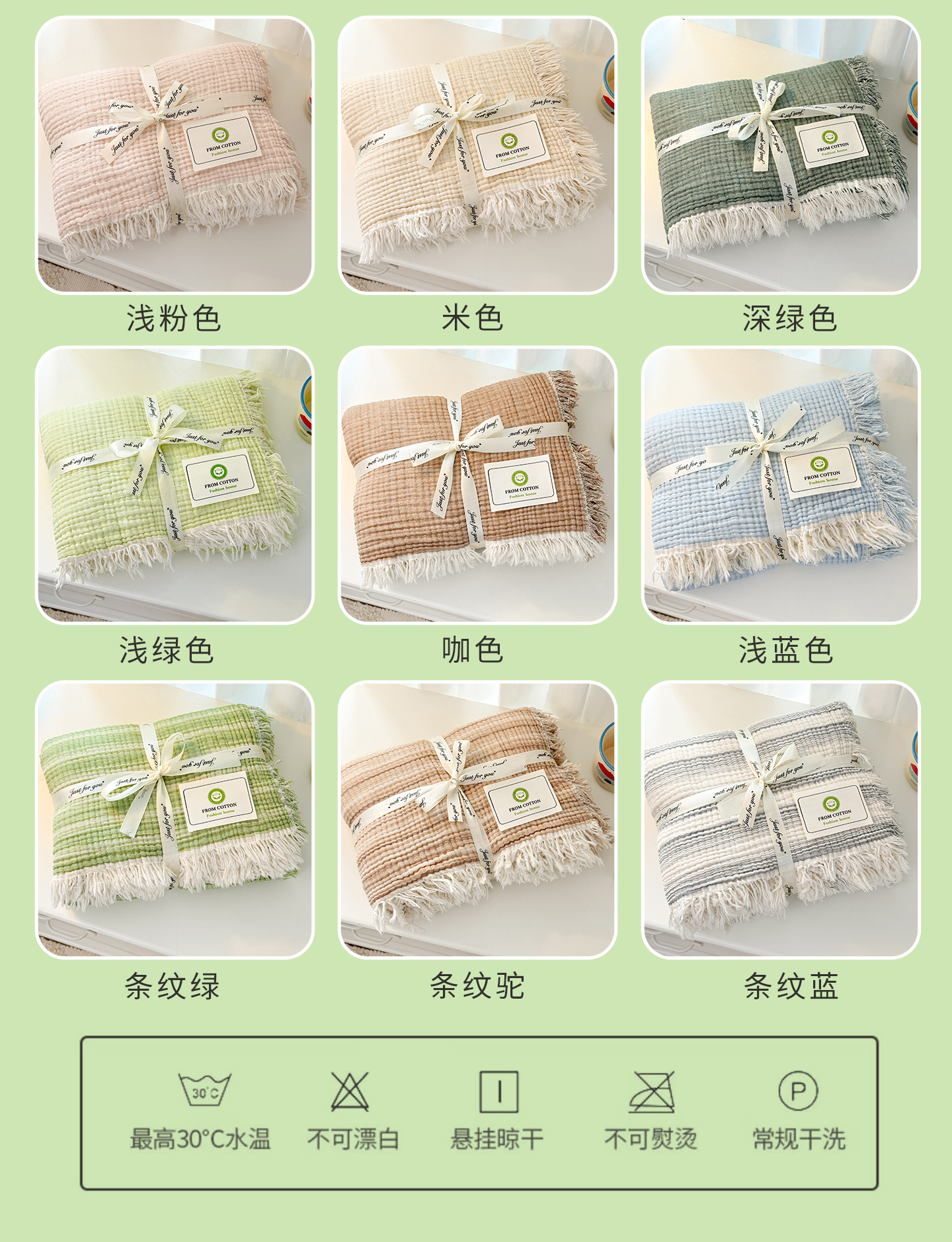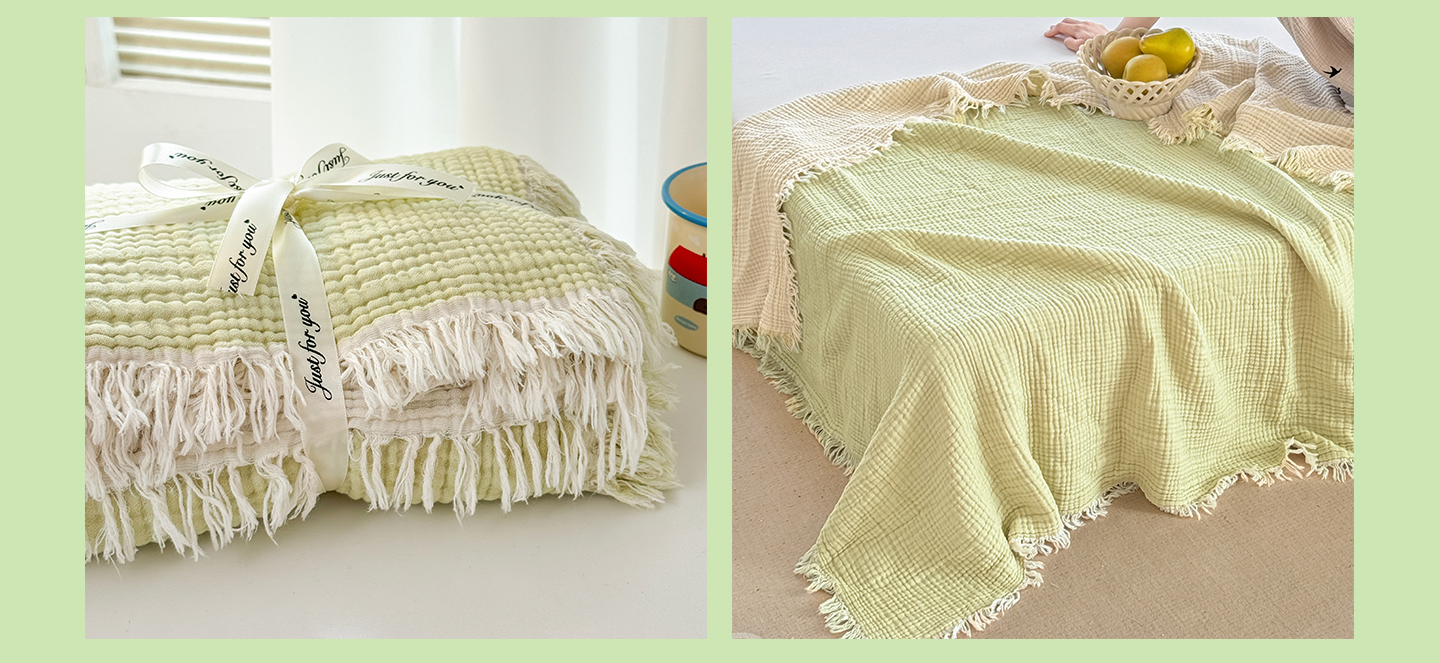 佰亿莱2026新款全棉四层纱流苏毯纯棉夏被盖毯空调毯 浅绿色