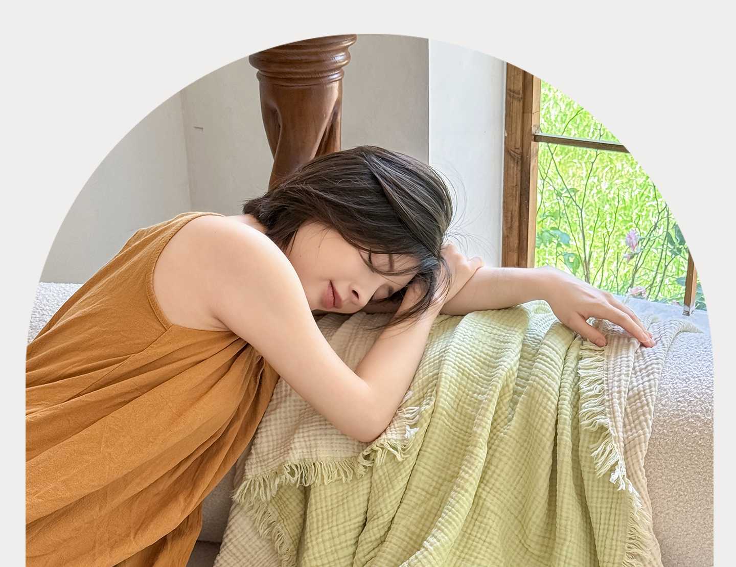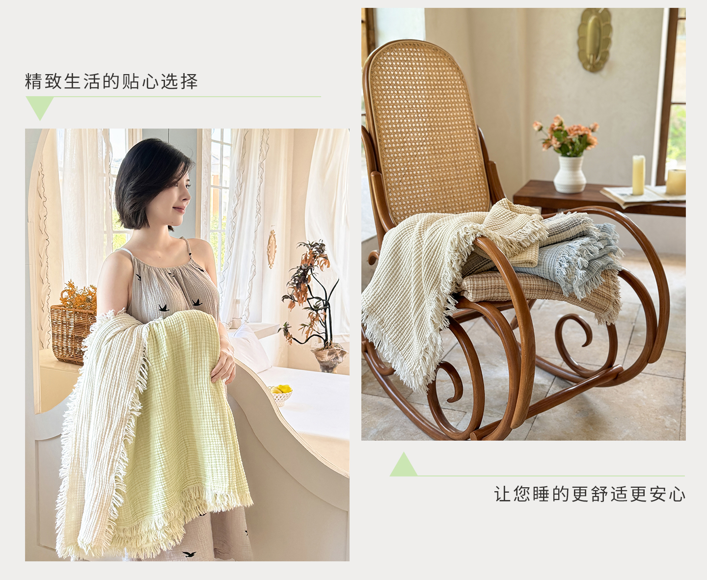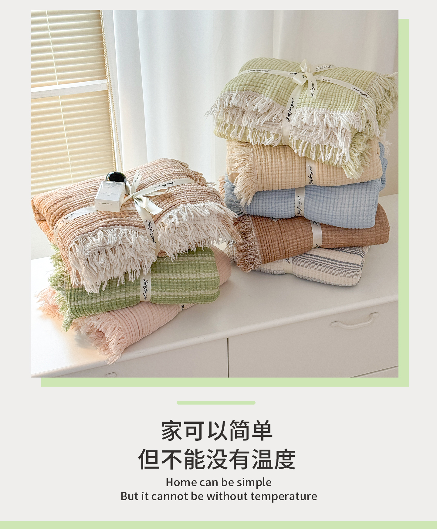 佰亿莱2026新款全棉四层纱流苏毯纯棉夏被盖毯空调毯 浅绿色