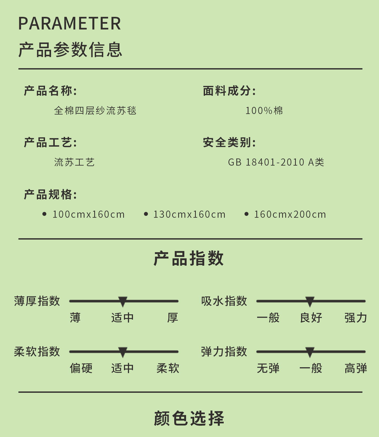 [{"sp_id":11,"sp_name":"\u989c\u8272\u5206\u7c7b","sp_format":2,"sp_list":[{"sp_value_id":669,"sp_value_name":"\u6d45\u7eff\u8272","sp_value_image":{"id":999,"path":"https:\/\/img3.91jf.com\/ghelp\/2025\/20250723\/20250723155541_883107.jpg"},"sp_value_video":{"id":0,"img":"","path":"","time":0,"download_num":0,"play_num":0},"price":"42.00","storage":300,"weight":"0.450","is_check_weight":0,"plus_price":"","sp_sort":25}]},{"sp_id":12,"sp_name":"\u5c3a\u5bf8","sp_format":1,"sp_list":[{"sp_value_id":75,"sp_value_name":"100*160cm","sp_value_image":{"id":0,"path":""},"sp_value_video":{"id":0,"img":"","path":"","time":0,"download_num":0,"play_num":0},"price":"42.00","storage":100,"weight":"0.450","is_check_weight":0,"plus_price":"","sp_sort":5},{"sp_value_id":76,"sp_value_name":"130*160cm","sp_value_image":{"id":0,"path":""},"sp_value_video":{"id":0,"img":"","path":"","time":0,"download_num":0,"play_num":0},"price":"48.00","storage":100,"weight":"0.580","is_check_weight":0,"plus_price":"","sp_sort":6},{"sp_value_id":77,"sp_value_name":"160*200cm","sp_value_image":{"id":0,"path":""},"sp_value_video":{"id":0,"img":"","path":"","time":0,"download_num":0,"play_num":0},"price":"66.00","storage":100,"weight":"0.900","is_check_weight":0,"plus_price":"","sp_sort":7}]}]