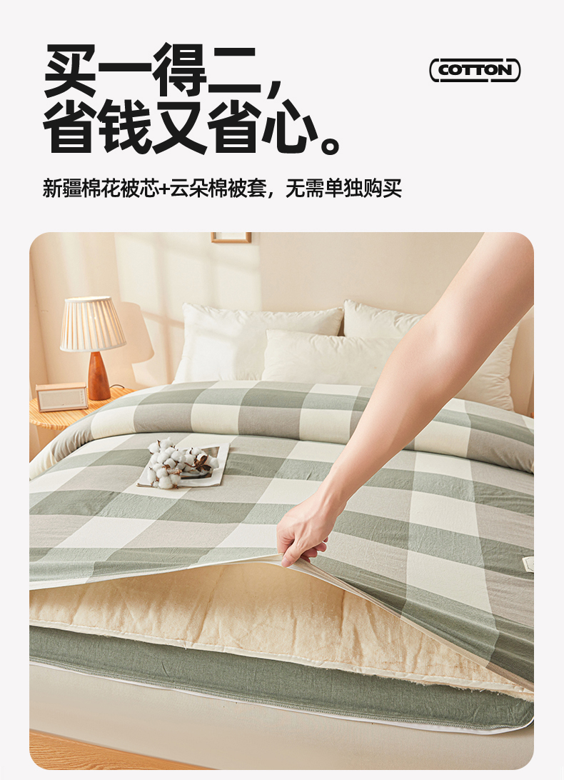 梵蒂莎 2025新款可拆卸棉花被(场景2) 绿大格
