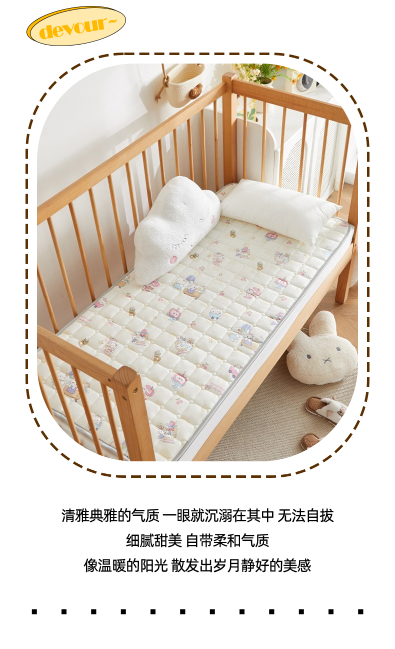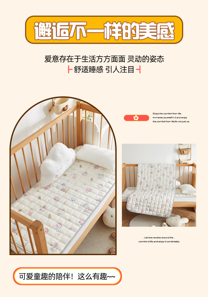 商品名称:奇丝雅 2025新款A类全棉棉花婴儿薄床垫幼儿园床褥子儿童专用小宝宝拼接四季通用午睡垫被午托入学 棉花填充-甜梦悠韵-全棉款