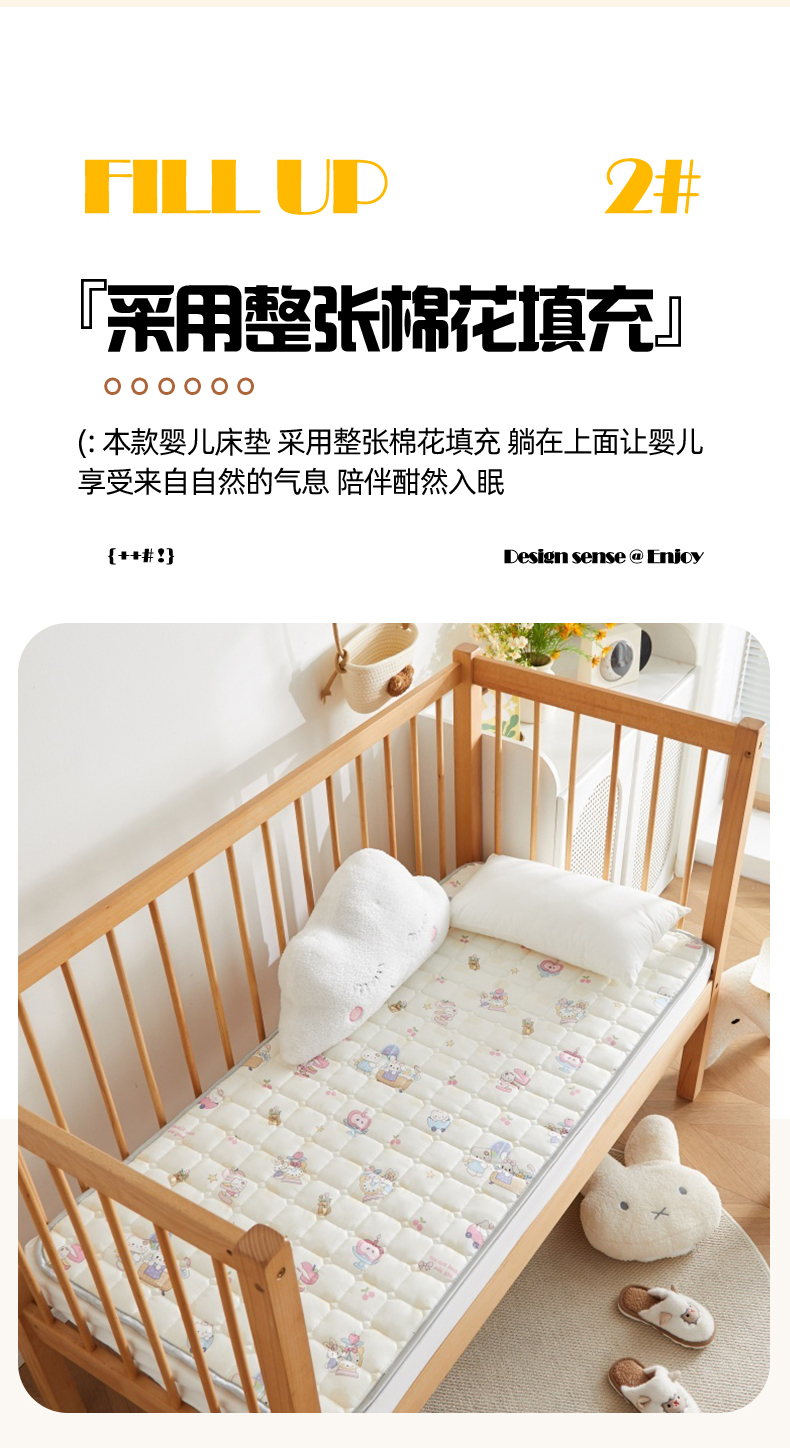 奇丝雅 2025新款A类全棉棉花婴儿薄床垫幼儿园床褥子儿童专用小宝宝拼接四季通用午睡垫被午托入学 棉花填充-甜梦悠韵-全棉款