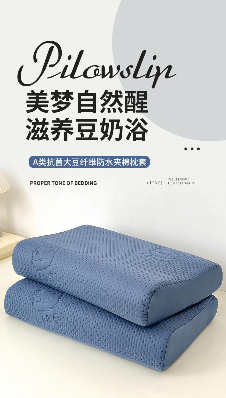 (总)曼陀罗 2025新款A类抗菌大豆纤维防水夹棉枕套 乳胶枕套,本白,宾蓝,草绿,豆绿,粉玉,卡其,深灰,雾蓝