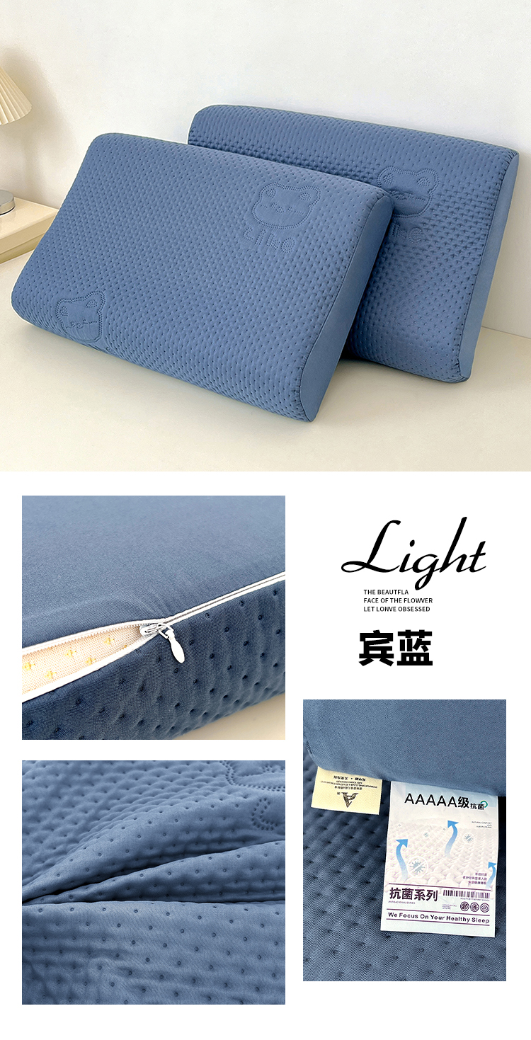 商品名称:曼陀罗 2025新款爱豆熊乳胶记忆棉枕套 爱豆熊-宾蓝