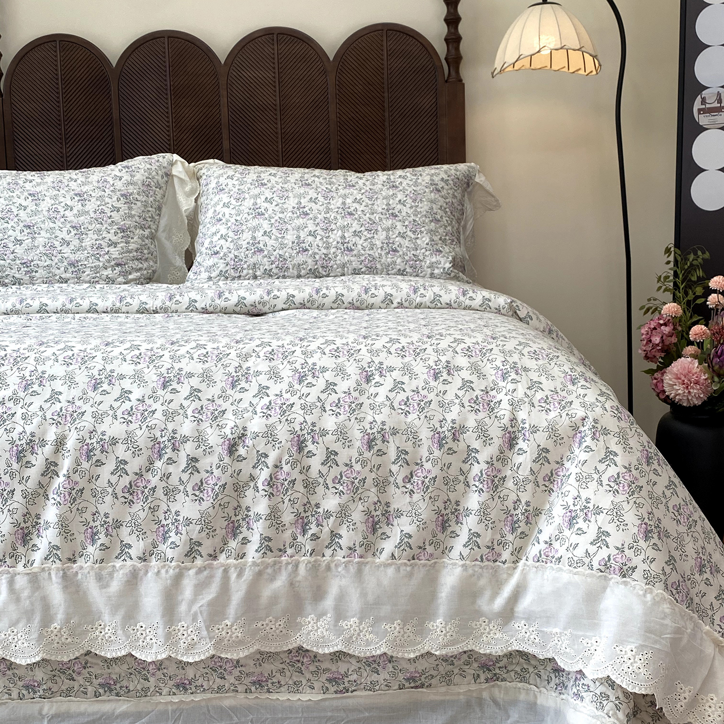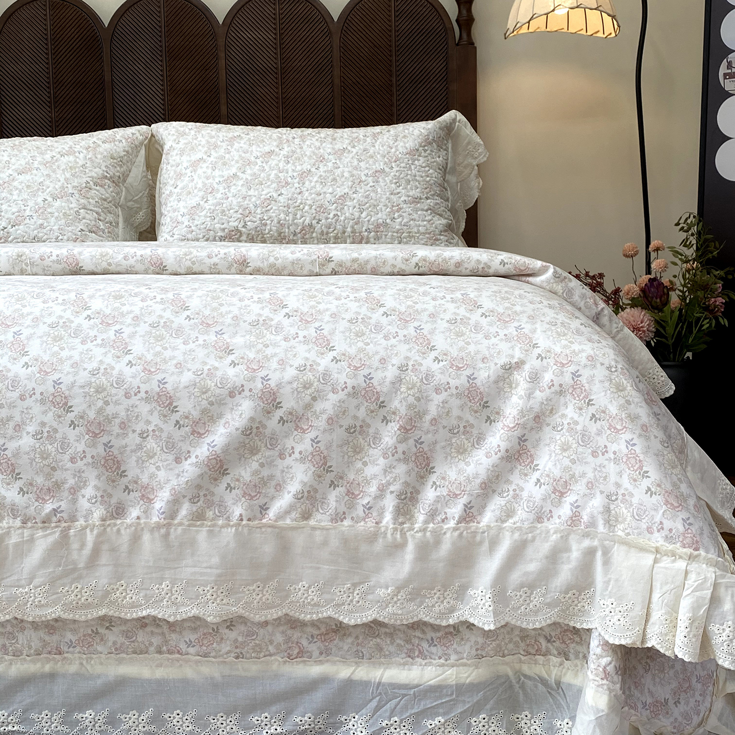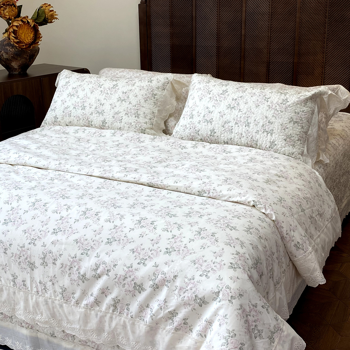 商品名称:(总)奈萝家纺 2025新款13372全棉法式大花边床盖被套四件套
