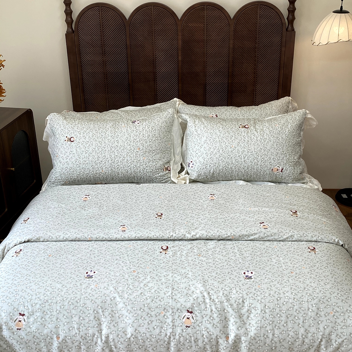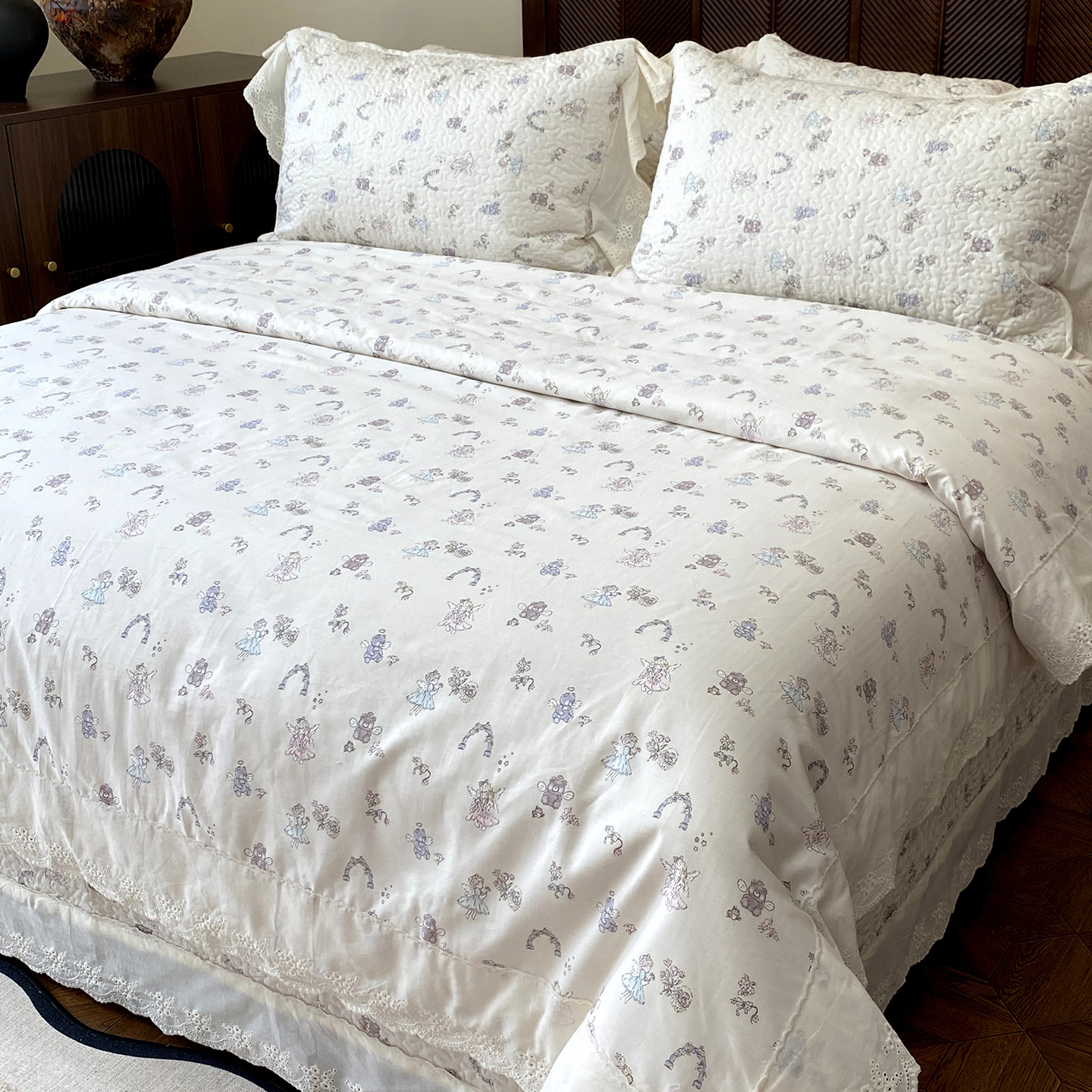 (总)奈萝家纺 2025新款全棉蕾丝花边床盖三件套四件套纯棉花边夏被,呆呆熊,花语绿,花语紫,柠檬,蔷薇,西瓜兔,夏蓝,夏梦,夏之语,小花熊,樱花