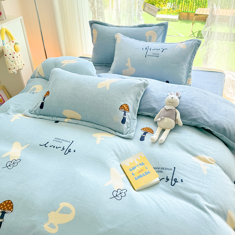 当前位置: 91家纺网 > 商品网购 > 床品套件 > 四件套 > 牛奶绒四件套 > 家贝爱 2025新款A类牛奶绒印花四件套 字母蘑菇