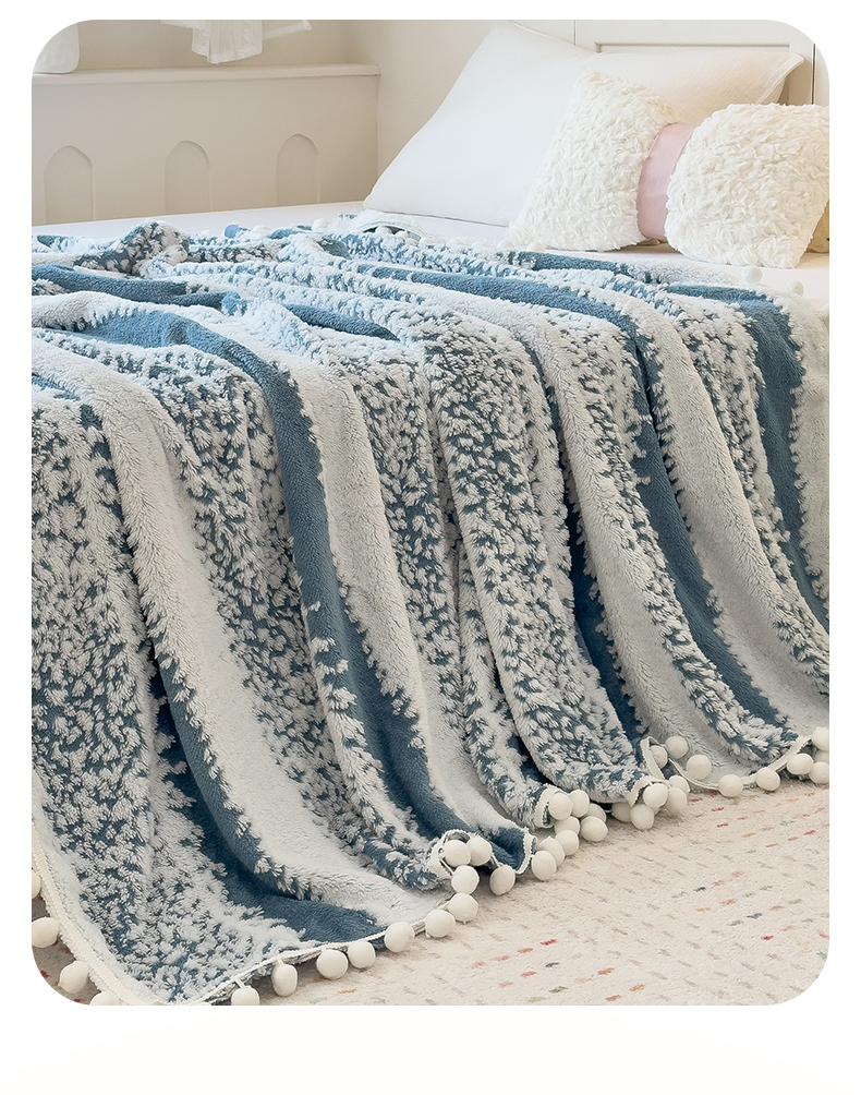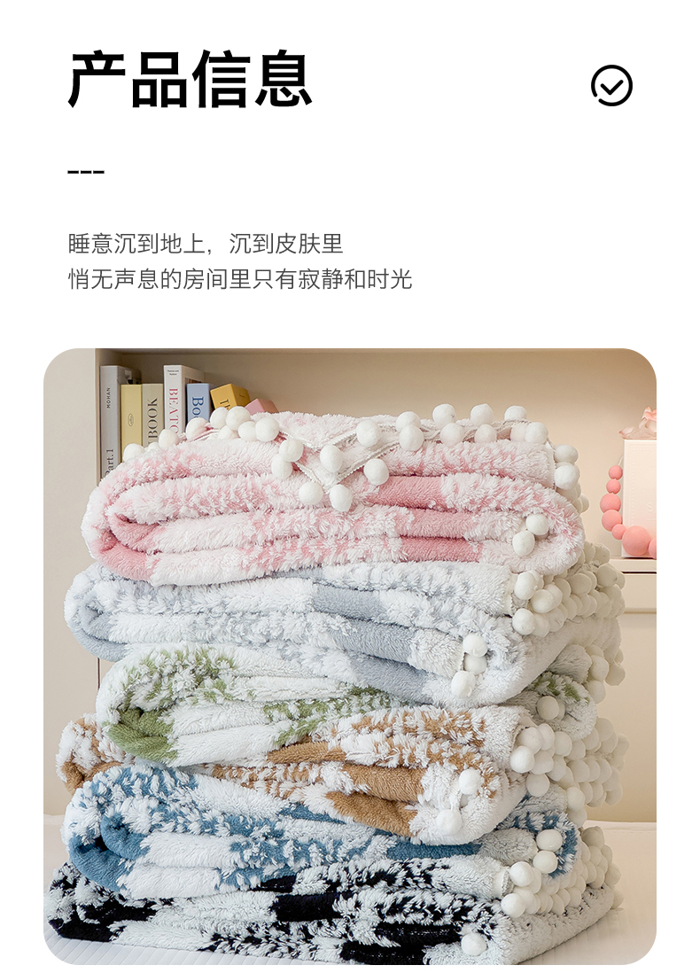(总)丝幔家纺 2025新款A类羊棉绒原创设计毛毯系列,叶绿,粉色,湖蓝,奶咖,奶昔白,浅灰,天蓝,香槟金,银灰,月光紫
