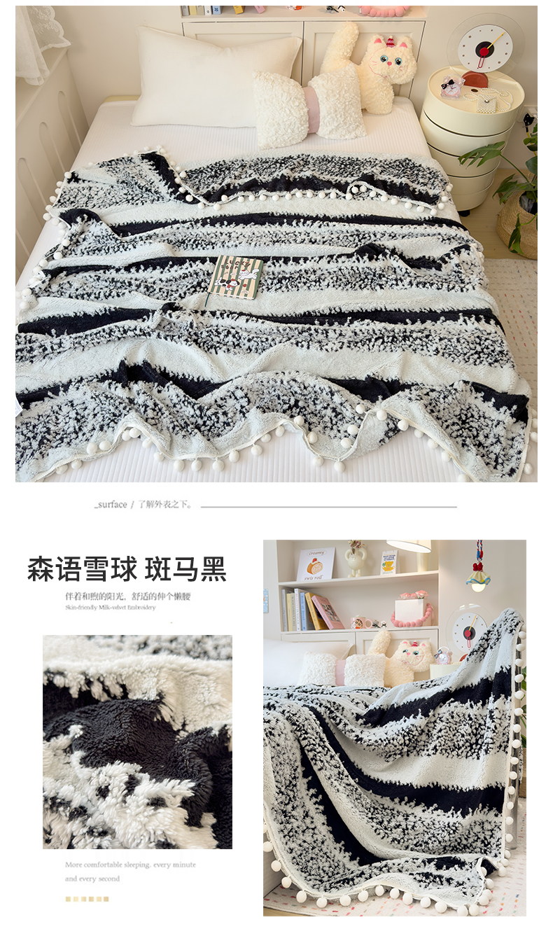 丝幔家纺 2025新款星绒梦语毛球多功能毛毯毯子-森语雪球 森语雪球 暖灰